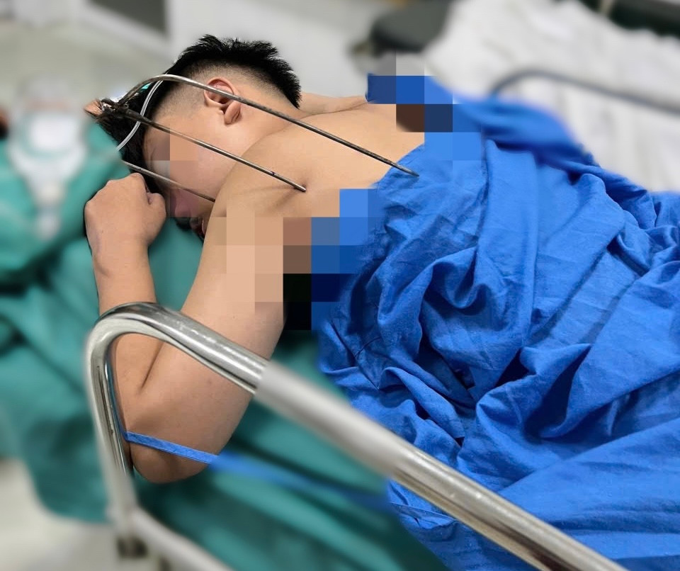 Theo thông tin từ bệnh viện, bệnh nhân nhập viện trong tình trạng tỉnh táo, mạch và huyết áp tạm ổn. Tuy nhiên, kết quả thăm khám cho thấy một dị vật dạng đinh ba tự chế đã đâm từ phía sau vai trái, xuyên qua nhu mô phổi và cắm sâu vào thành bên thất trái của tim. Dị vật vẫn còn nằm trong cơ thể và chuyển động theo nhịp tim, gây tràn máu màng tim – một tình trạng đe dọa tính mạng nghiêm trọng.