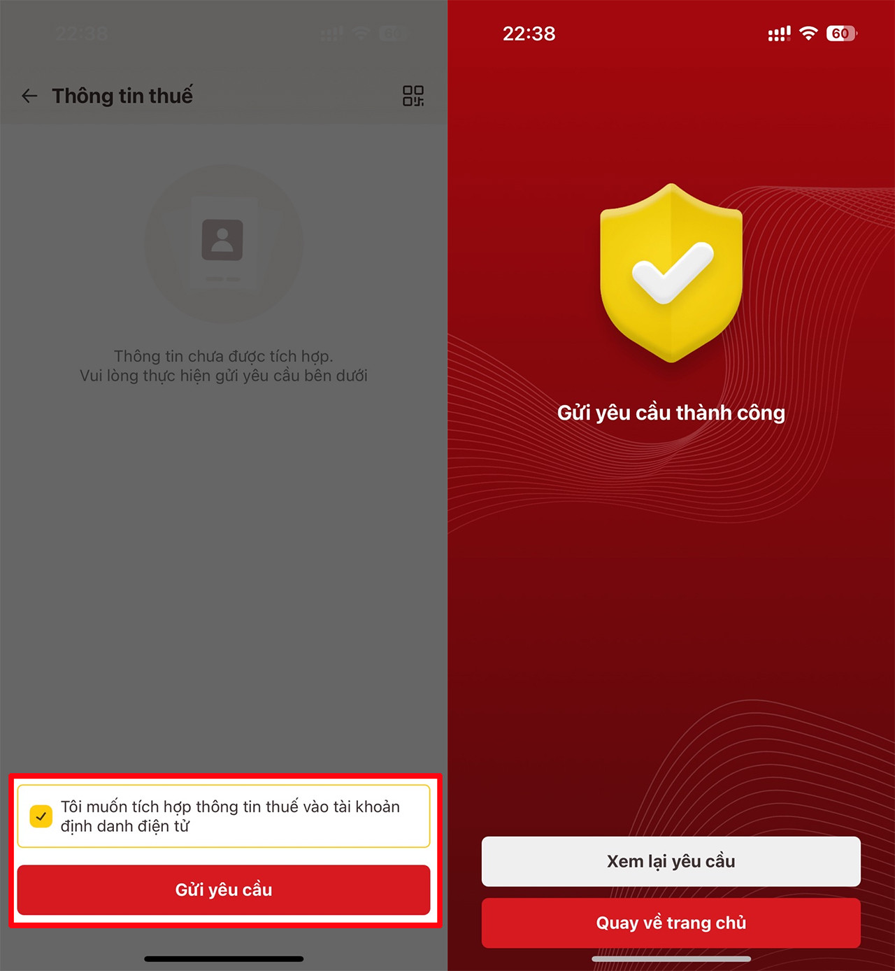 Bước 4: Sau khi Cục Thuế đã xác thực yêu cầu thành công, người dùng sẽ nhận được thông báo trong ứng dụng VNeID.