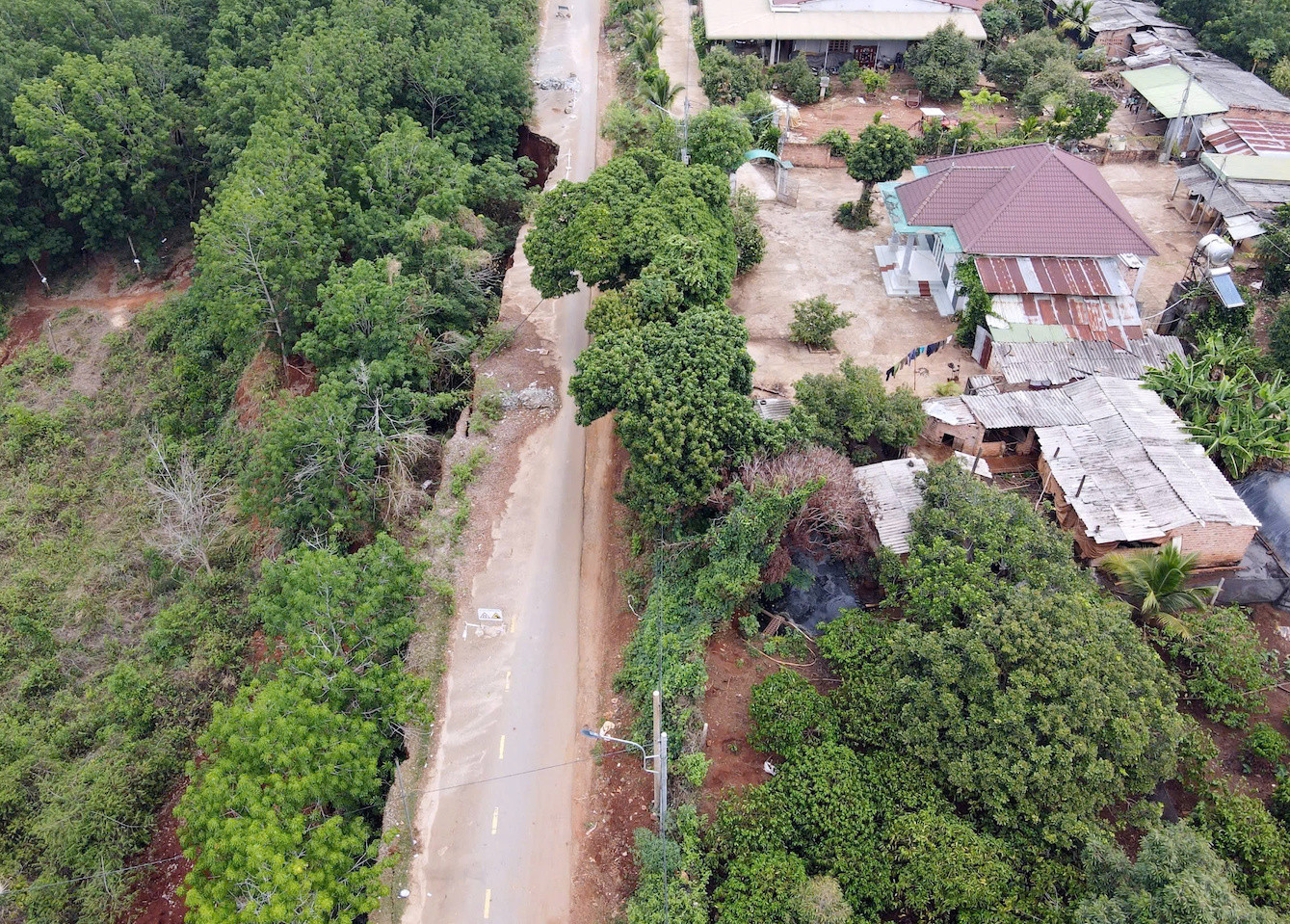 | Những căn nhà sát với vị trí sạt lở đã bị nứt. |