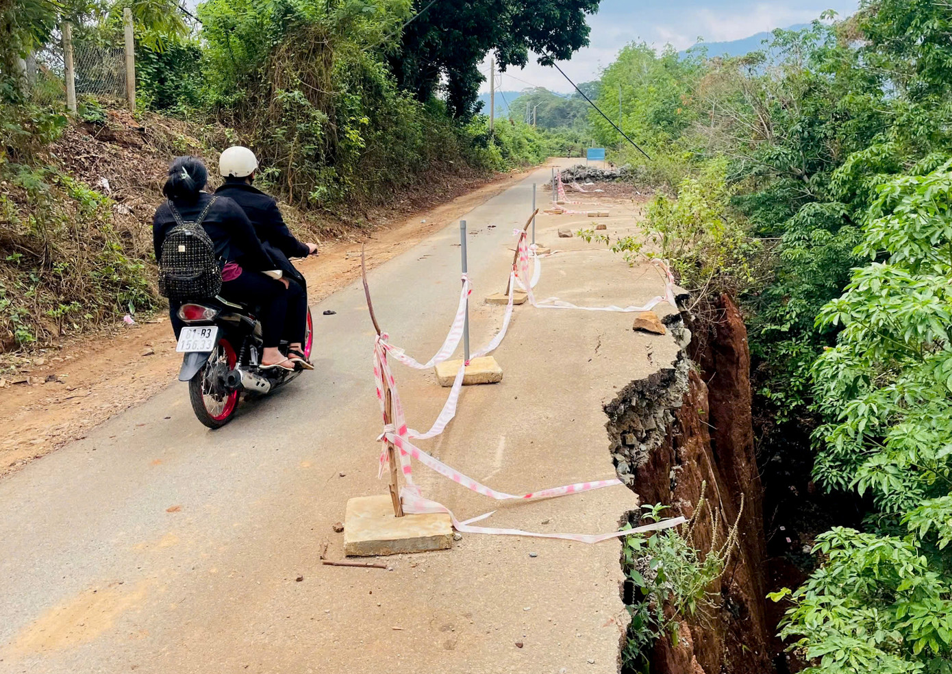 | Thị trấn Ia Ly kè đá, chăng dây tạm bợ để ngăn người dân không lao xuống vực. |