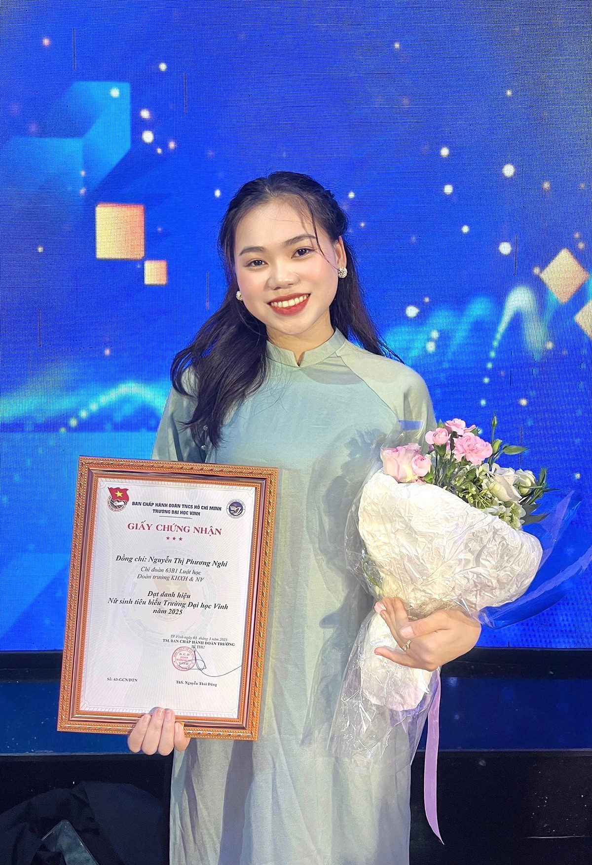 Đến nay, Nguyễn Thị Phương Nghi đã đạt được nhiều bằng khen, giấy khen và giải thưởng. Với cô, đây là những dấu mốc gắn với quyết tâm, nỗ lực sắp xếp, cân bằng giữa học tập với nghiên cứu khoa học, tham gia công tác Đoàn – Hội, phong trào thanh niên.