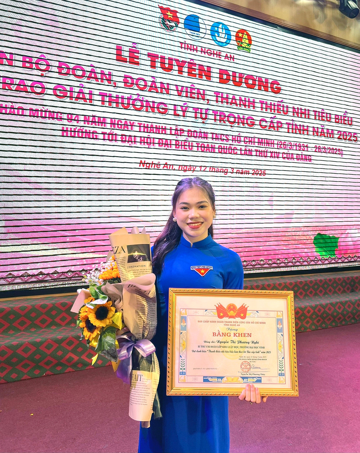 Đó là chia sẻ của Nguyễn Thị Phương Nghi (SN 2004), Ủy viên Ban Thường vụ Đoàn Trường Khoa học Xã hội và Nhân văn (Trường Đại học Vinh), Chủ nhiệm CLB Thực hành pháp luật, Bí thư Chi đoàn lớp 63B1 Luật học.