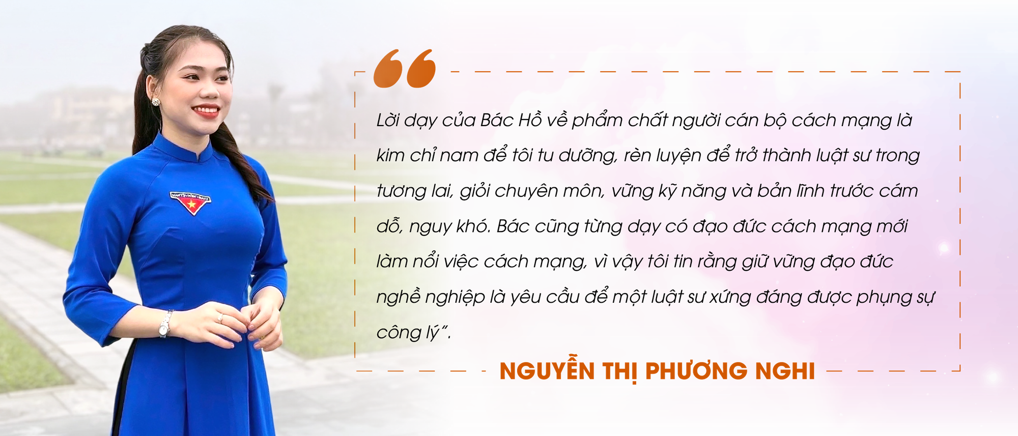 Trên hành trình trở thành một luật sư, nữ sinh 2K càng thấm thía hơn, tâm đắc hơn với những bài học, lời dạy của Bác Hồ về cần, kiệm, liêm, chính, chí công vô tư.