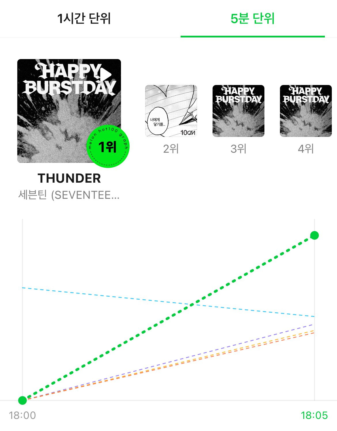 Được trình diễn trước vào đêm concert miễn phí, viral vũ đạo trên X cũng không làm giảm nhiệt khi SEVENTEEN phát hành album chính thức. Ngày 26/5 - đúng sinh nhật của nhóm, album HAPPY BURSTDAY "lên kệ". Đây là lần đầu tiên có đủ 13 bài hát solo của 13 thành viên trong album. Bài hát chủ đề THUNDER lập tức "chạm nóc" bảng xếp hạng Melon 5 minutes chart ngay khi phát hành.