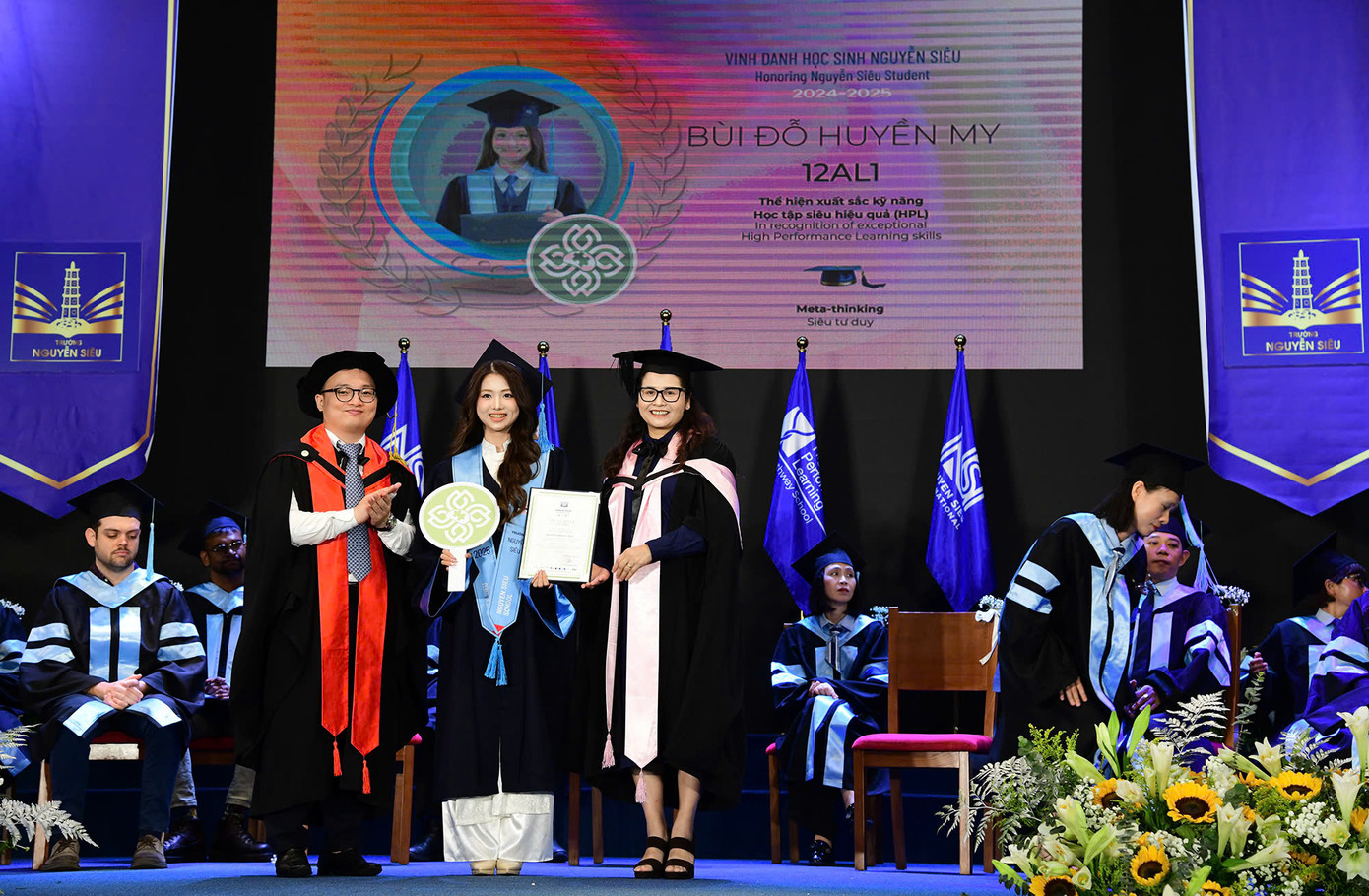 Trong khuôn khổ buổi lễ, Trường THCS&THPT Nguyễn Siêu cũng vinh danh các gương mặt tiêu biểu cho “Chân dung học sinh Nguyễn Siêu” và những đại diện xuất sắc của 8 giá trị và kỹ năng học tập siêu hiệu quả (HPL).
