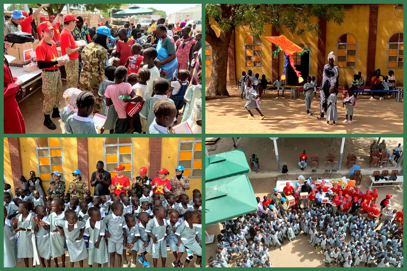 Trong khi đang thực hiện đồng thời nhiều nhiệm vụ quan trọng như nâng cấp đường sá, sửa chữa sân bay trực thăng, xây dựng doanh trại thông minh và chuẩn bị các nội dung phục vụ kiểm tra năng lực toàn diện của Liên Hợp Quốc, Đội Công binh số 3 vẫn không quên vai trò “sứ giả hòa bình” trong trái tim trẻ thơ. Bằng tình cảm chân thành, những hành động nhỏ nhưng đầy ý nghĩa của những người lính mũ nồi xanh Việt Nam tại Abyei đang từng ngày lan tỏa hình ảnh một Việt Nam nhân ái, trách nhiệm và đầy sáng tạo trên bản đồ gìn giữ hòa bình thế giới.