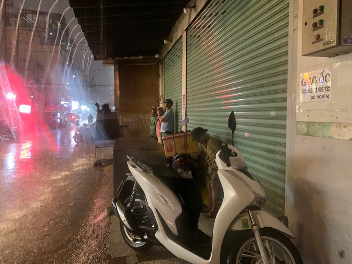 Theo ghi nhận, hơn 18 giờ ngày 1-6, mưa lớn bắt đầu trút xuống hầu hết các quận, huyện trên địa bàn TP HCM kèm theo gió giật mạnh. Một số người dân đi đường bị gió giật làm rơi nón bảo hiểm.