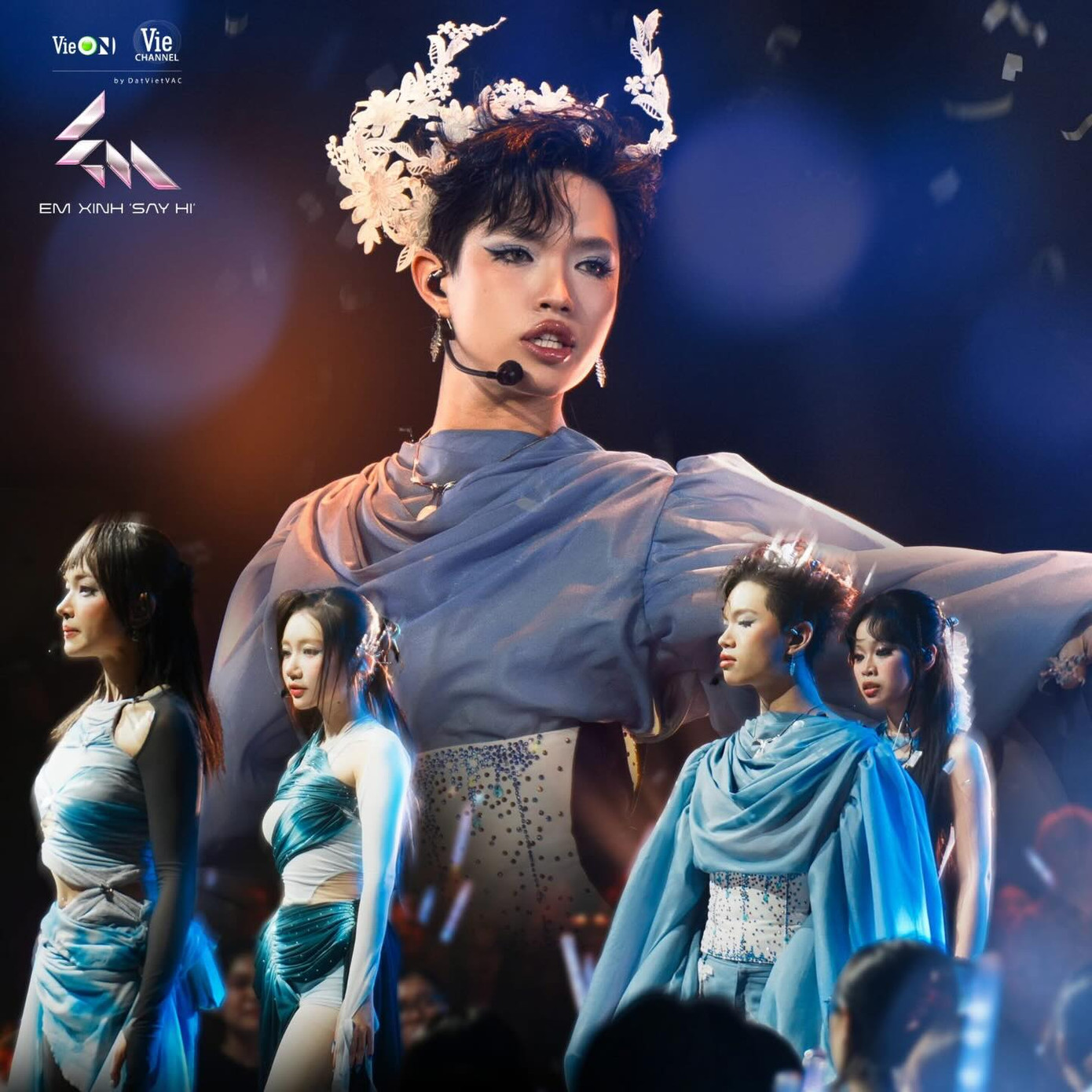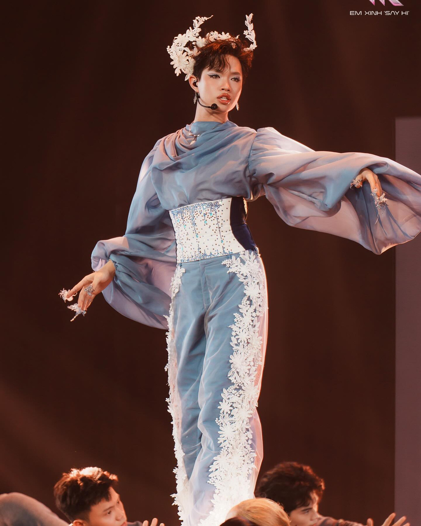 Dàn "em xinh" gây choáng ngợp vì outfit lộng lẫy, đính kết cầu kỳ, lấy cảm hứng từ nghệ thuật Tuồng/ hát Bội. WEAN có phần xuất hiện đáng nhớ trong tạo hình chú hề. Giới chuyên môn đánh giá cao khía cạnh tạo hình của Hề khi lồng ghép văn hóa Tây - Ta khéo léo, gửi gắm ẩn ý trong từng chi tiết từ phụ kiện Mão đội đầu đến những chiếc mặt nạ.