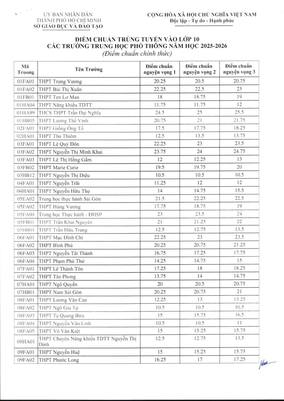 | Điểm chuẩn vào lớp 10 THPT được công bố vào chiều 26/6. Ảnh: Fanpage Tin giáo dục TP.HCM |