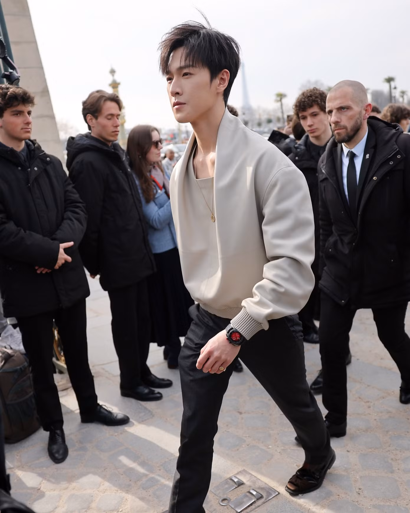 Về phần Lý Quân Nhuệ, anh từng có màn "chào sân" đầy hứa hẹn tại show diễn của thương hiệu 3 tháng trước. Trong ngày trở lại Paris Fashion Week, nam chính Cửu Trọng Tử tiếp tục lăng xê kiểu áo có chi tiết cổ áo xếp nếp cách điệu. Tuy nhiên, tổng thể tạo hình của anh bị nhận xét kém tôn dáng, nhạt nhòa giữa dàn sao quốc tế.