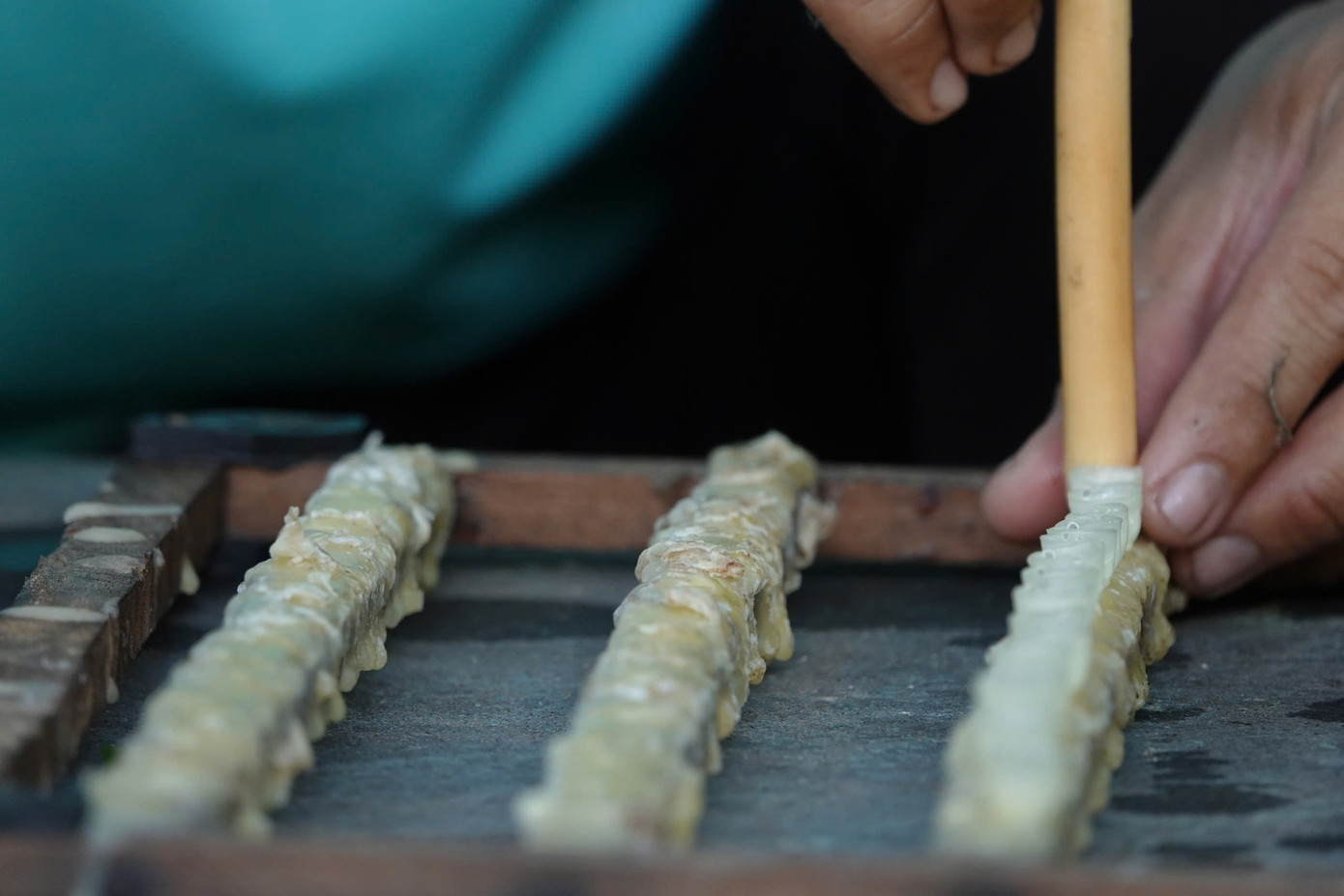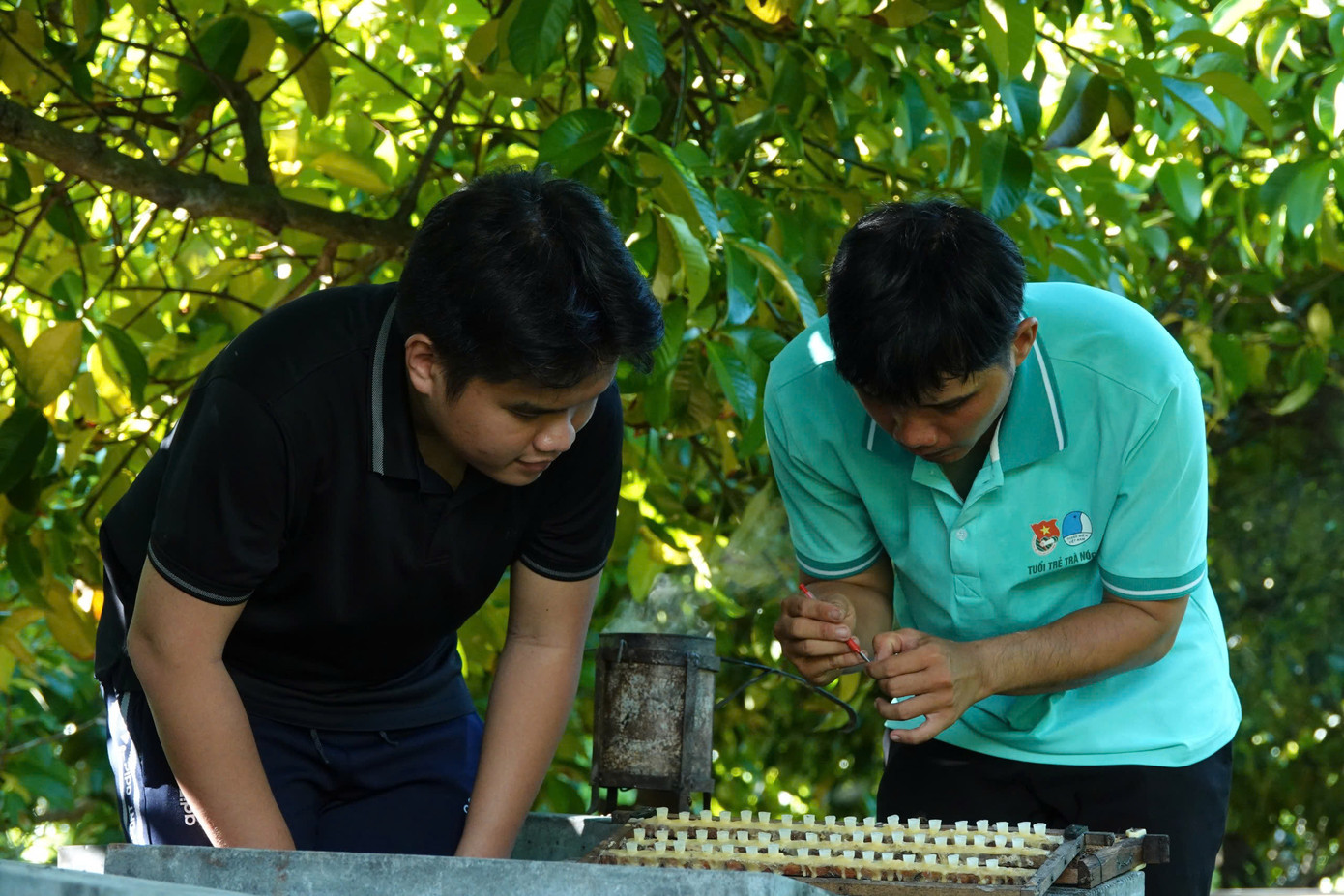 "Để tạo ong chúa mới, cần bắt chúa đã già ra khỏi tổ, sau đó lựa thùng ong mạnh tuyển lựa ấu trùng ong chúa dưới 3 ngày tuổi cho vào nụ giả trong thùng. Khi phát hiện mất chúa, ong thợ sẽ nhả sữa chúa để nuôi ấu trùng và tạo chúa mới. Từ đó, ong chúa mới sẽ được tạo ra, sinh sản duy trì đàn ở số lượng lớn, cho mật đạt cao nhất”, anh Trọng tiết lộ.