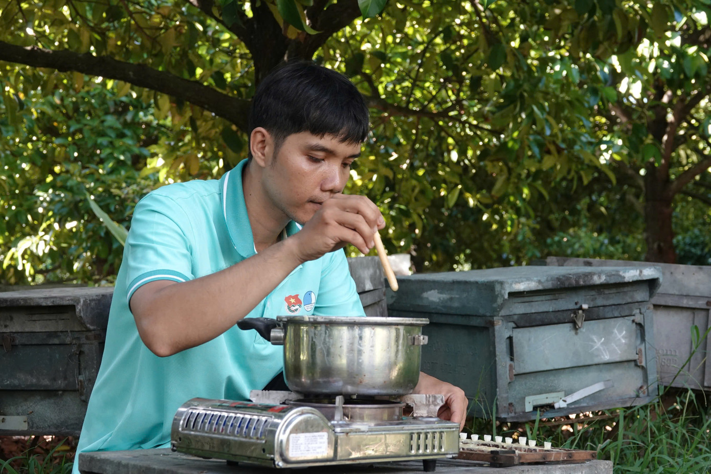 Đầu tháng 7/2025, anh Nguyễn Kim Trọng (34 tuổi, ngụ phường Thới An Đông, TP. Cần Thơ) tất bật chăm sóc hàng trăm thùng ong mật của mình đặt trong vườn. Anh Trọng kể, gia đình chủ yếu làm nông, sau khi hoàn thành nghĩa vụ quân sự và tốt nghiệp y sĩ tại Trường Trung cấp Miền Tây, anh về làm việc tại một công ty chế biến thực phẩm ở Hậu Giang. Dù vậy, chàng trai luôn cháy bỏng ngọn lửa khởi nghiệp trên chính mảnh đất mình sinh ra và lớn lên.