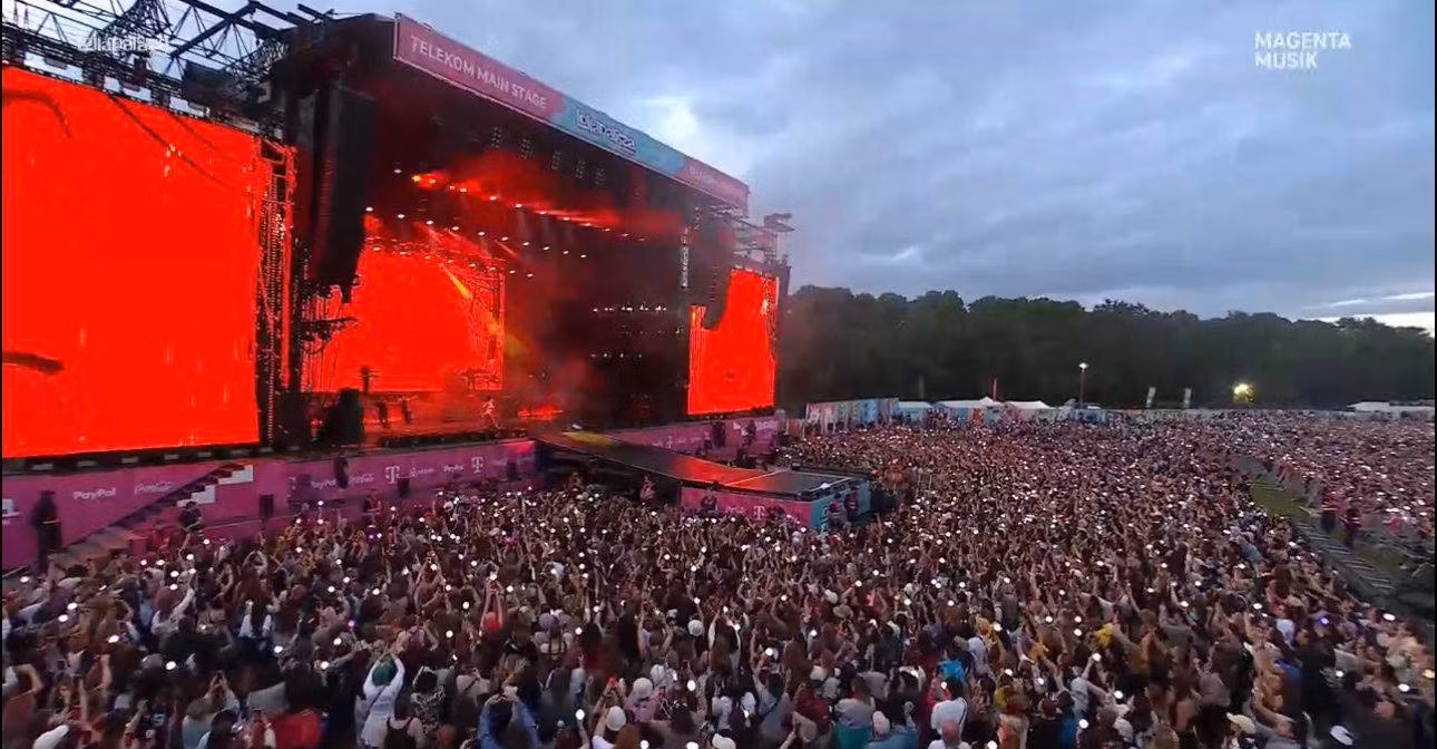 Tại Lollapalooza Berlin 2025, ngoài những màn trình diễn bùng nổ, một trong những khoảnh khắc gây sốt nhất chính là "biển" flash mà ARMY (fandom của BTS) đã dành tặng riêng cho j-hope. Biển ánh sáng tím huyền ảo - màu sắc đặc trưng của BTS giữa không gian rộng lớn của Olympiastadion tạo nên một khung cảnh choáng ngợp.
