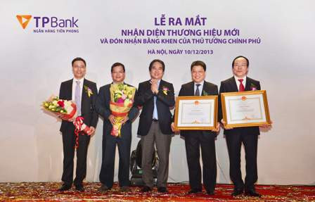 Ngày 10/12/2013, tại Tp. Hà Nội, Ngân hàng TPCP Tiên Phong (TPBank) đã long trọng tổ chức Lễ ra mắt nhận diện thương hiệu mới và Lễ đón nhận bằng khen của Thủ tướng Chính phủ về thành tích xuất sắc trong công tác tái cơ cấu.