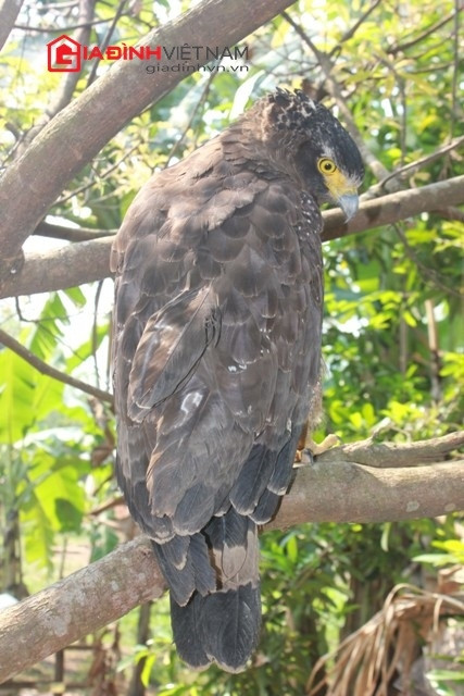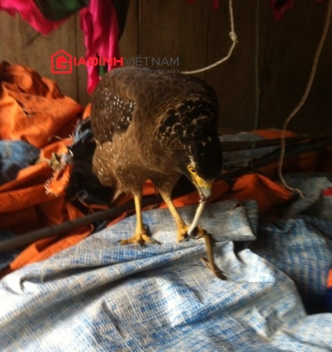 “Con chim đại bàng này không đi đâu xa, chỉ bay nhảy trên mái nhà và xung quanh vườn. Hàng ngày nó tự đi săn mồi”, ông Phận cho biết.