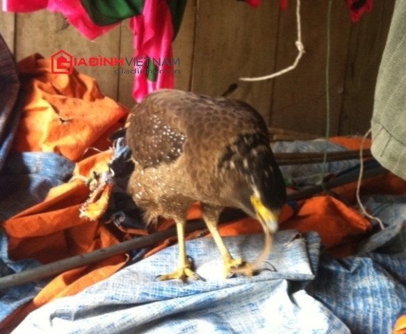 Khi chúng tôi lại gần, chú chim đại bàng chỉ ngó nghiêng quan sát người lạ mà không hề sợ hãi. Ước lượng, con chim đại bàng có chiều cao khoảng 0,5 m, sải cánh khoảng hơn 1 m. Chủ nhân cho biết, cách xa hàng cây số vẫn có thể nghe được tiếng kêu của chú chim này.