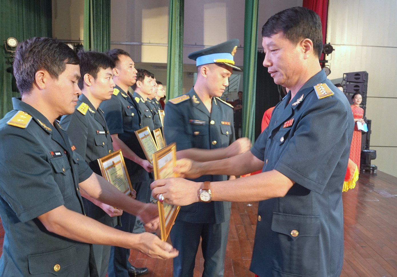 | Lãnh đạo Quân chủng PK-KQ trao thưởng cho 10 Gương mặt trẻ tiêu biểu năm 2023. |