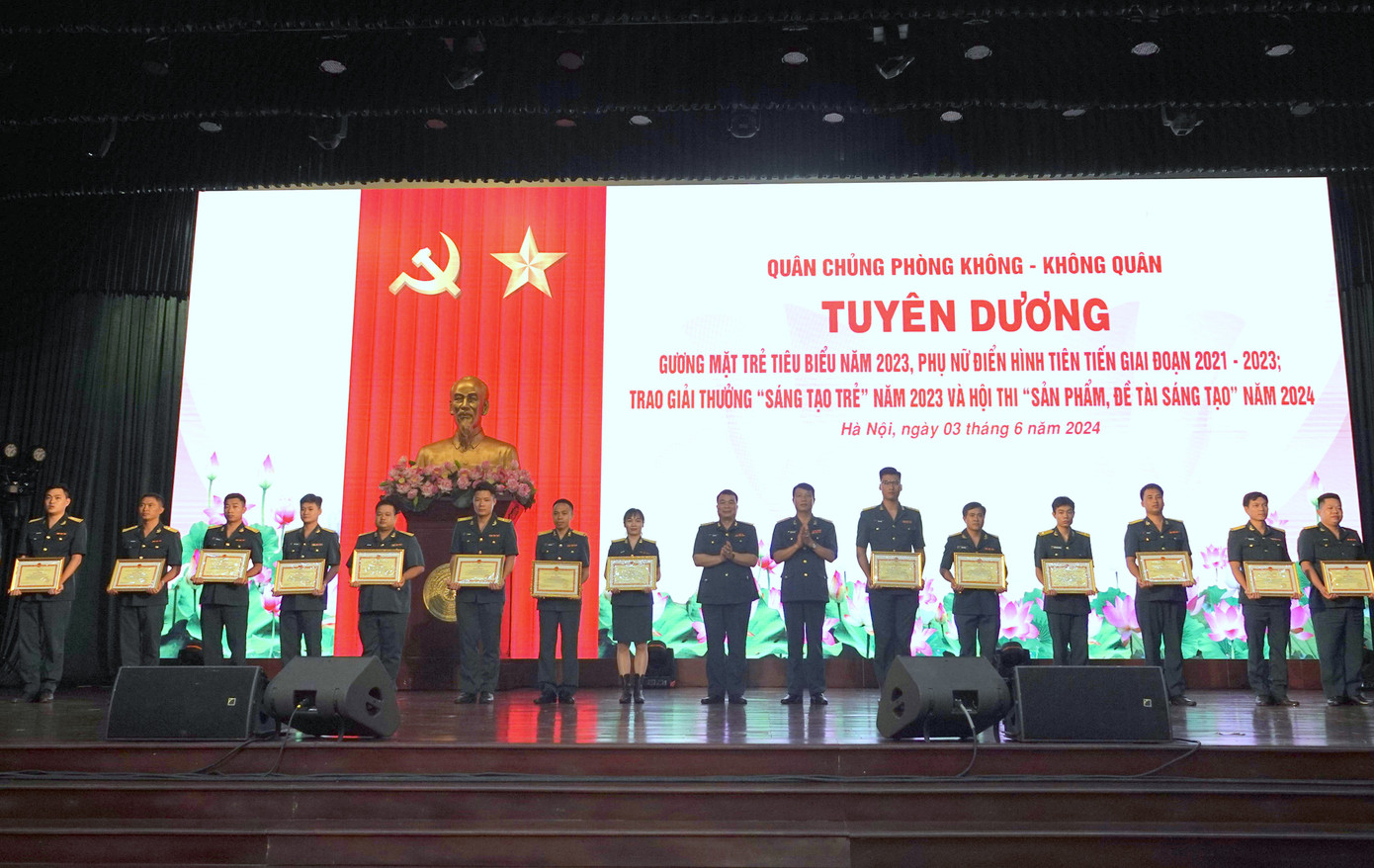 | Lãnh đạo Trung ương Đoàn và Cục Chính trị Quân chủng PK-KQ trao thưởng cho các tập thể xuất sắc trong tham gia Giải thưởng "Sáng tạo trẻ" và Hội thi "Sản phẩm, đề tài sáng tạo". |