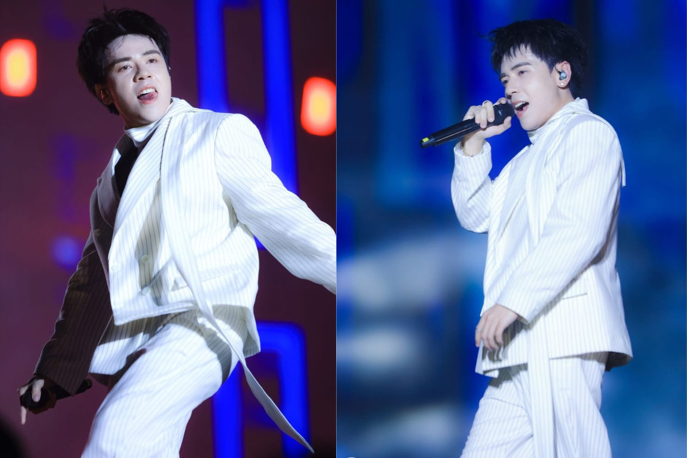 | Quang Hùng MasterD hóa "bạch công tử" trong lần trình diễn tại quê nhà. Nguồn clip: Threads @nlinh_997 |