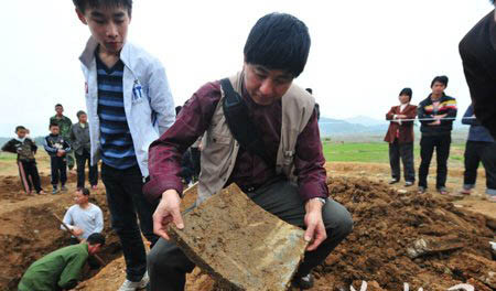 Hôm qua, khi những chuyên gia khảo cổ của Viện khảo cổ Phúc Kiến tới nơi thì ngôi mộ đã bị cậy tung nắp. Chỉ còn thi thể, quần áo, cùng một ít đồ trang sức sót lại.