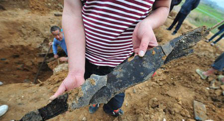 Do cần thêm đất canh tác, nông dân thôn Liên Đôn dùng máy xúc để ủi phẳng mỏm đất nói trên. Khi xúc hết lớp đất phía trên, máy xúc khựng lại do đụng phải nhiều miếng gỗ cứng. Thợ máy dùng xà beng cậy lớp gỗ thì phát hiện dưới đó là một quan tài.