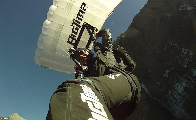 Khi rơi tự do được khoảng 900m, Julio Muñoz mới bật dù và tiếp đất an toàn trong sự cổ vũ của mọi người.