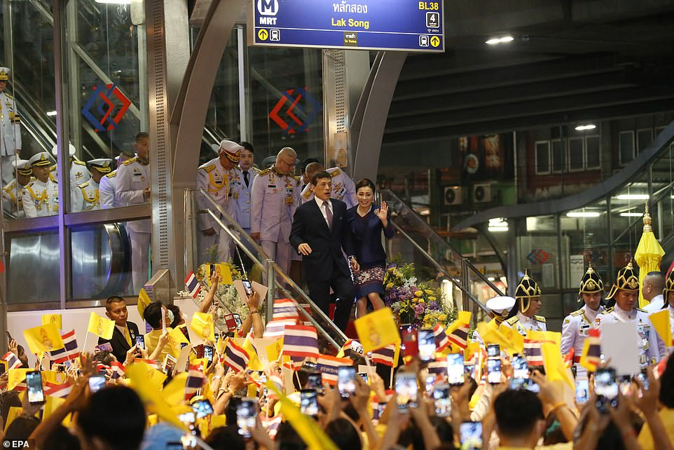 Theo Daily Mail, Quốc vương cùng Hoàng hậu hôm 14/11 tham gia lễ khánh thành ga tàu điện ngầm ở ngoại ô thủ đô Bangkok.