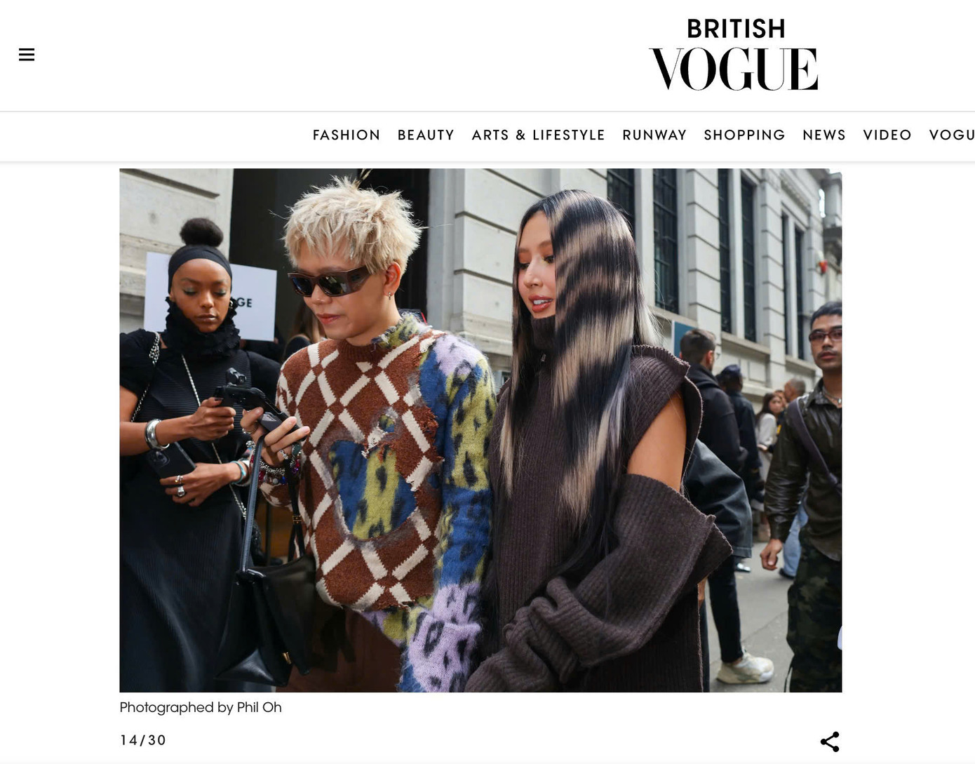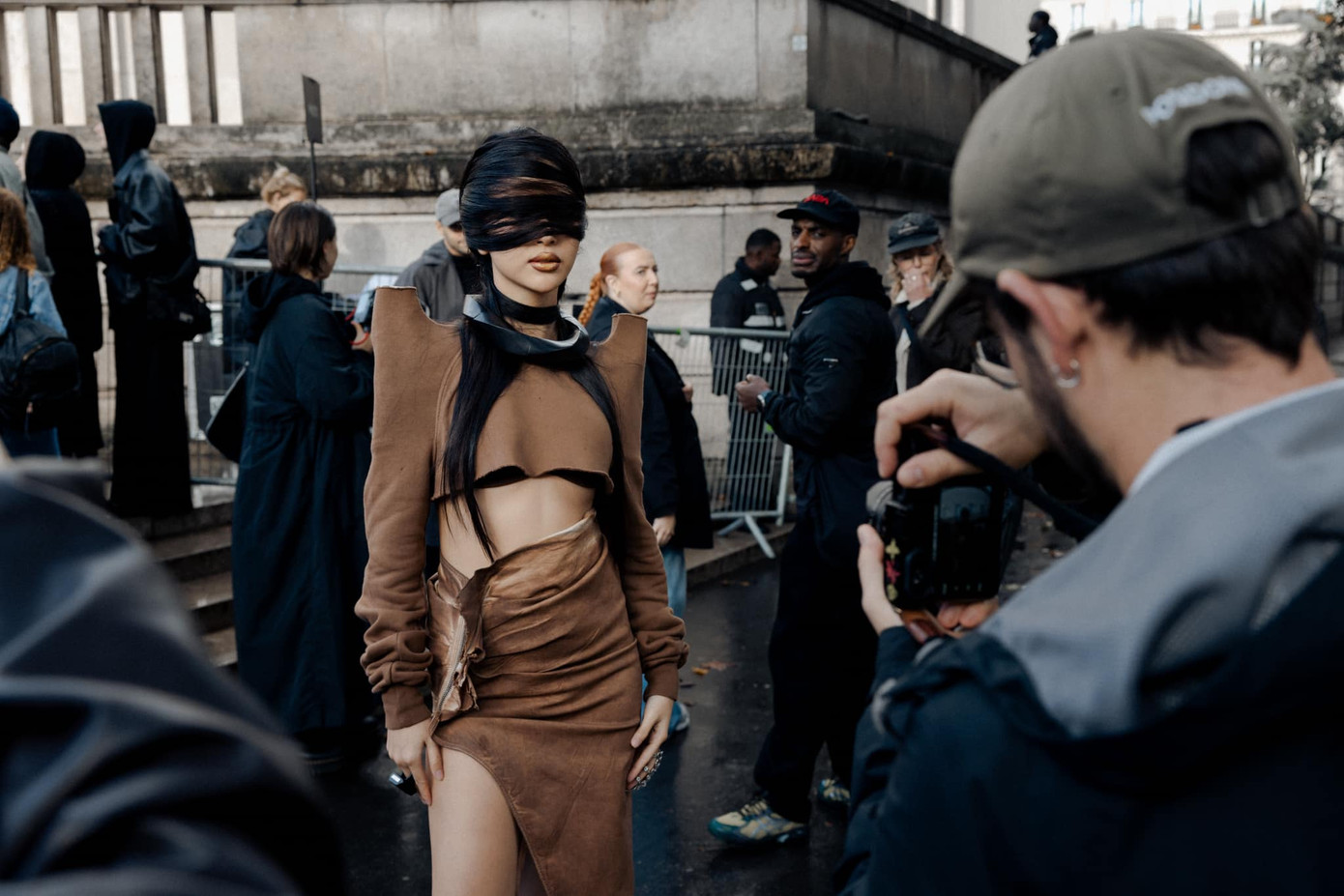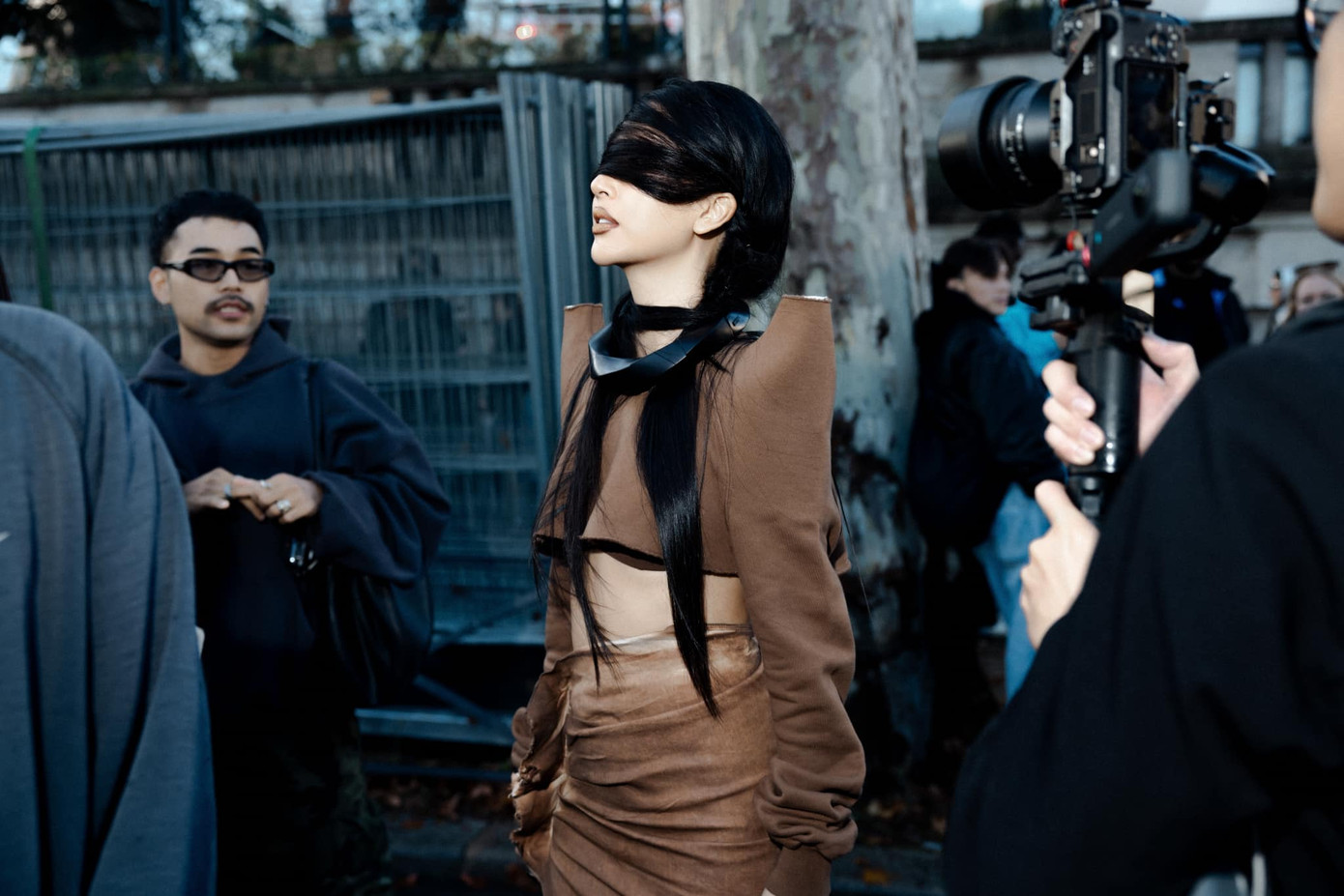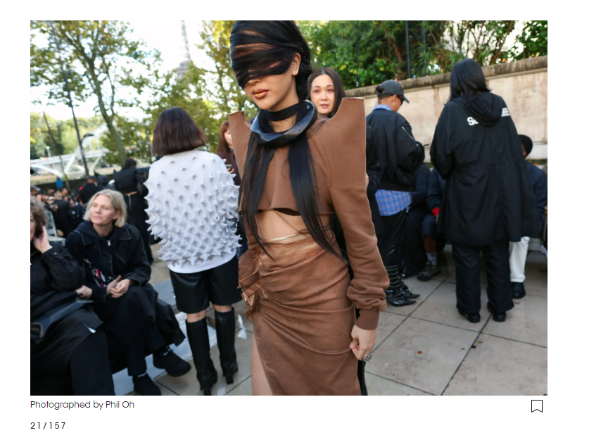 Tạo hình của Quỳnh Anh Shyn tại show diễn được nhiếp ảnh gia Phil Oh ghi lại, đăng tải trong danh sách thời trang đường phố đẹp nhất (Phil Oh’s Best Street Style Photos From the Spring 2025 Shows in Paris) của tạp chí VOGUE.