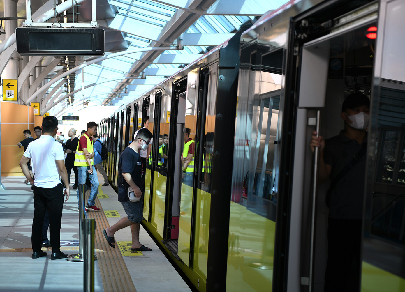| Đúng 8h, các đoàn tàu đường sắt đô thị Nhổn - Ga Hà Nội lăn bánh chở những hành khách đầu tiên đi tàu miễn phí. |