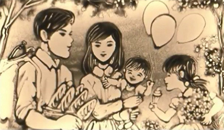 Clip vẽ tranh cát được thể hiện trên nền nhạc ca khúc "This is my father's world" của Reta Ceol, kể về câu chuyện gia đình người cựu chiến binh nghèo.