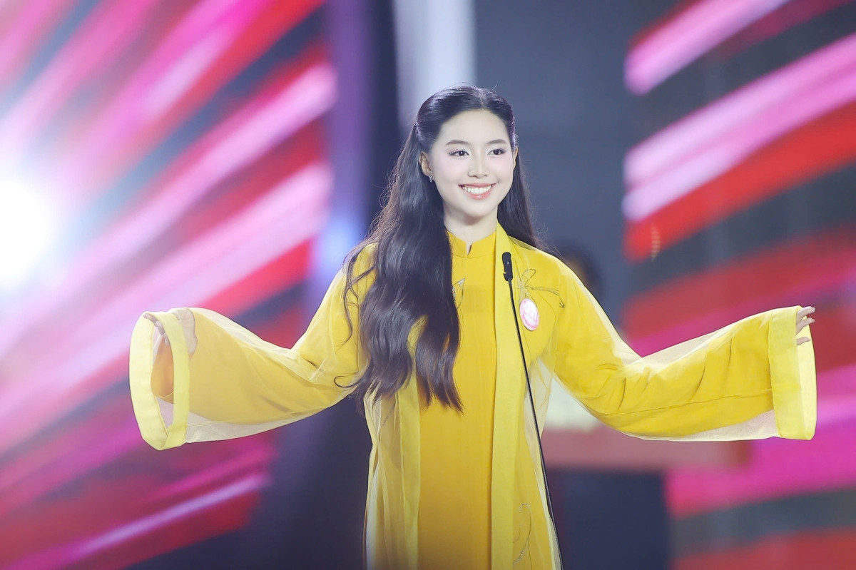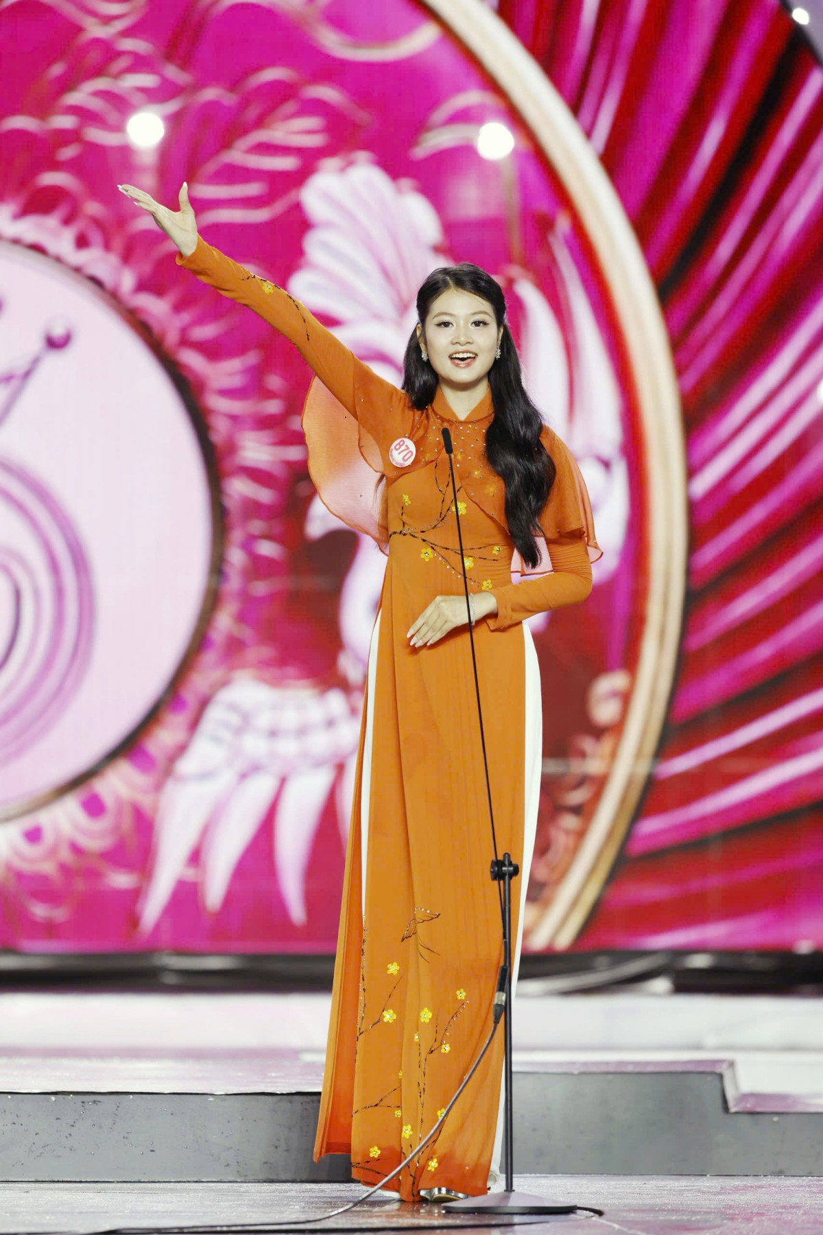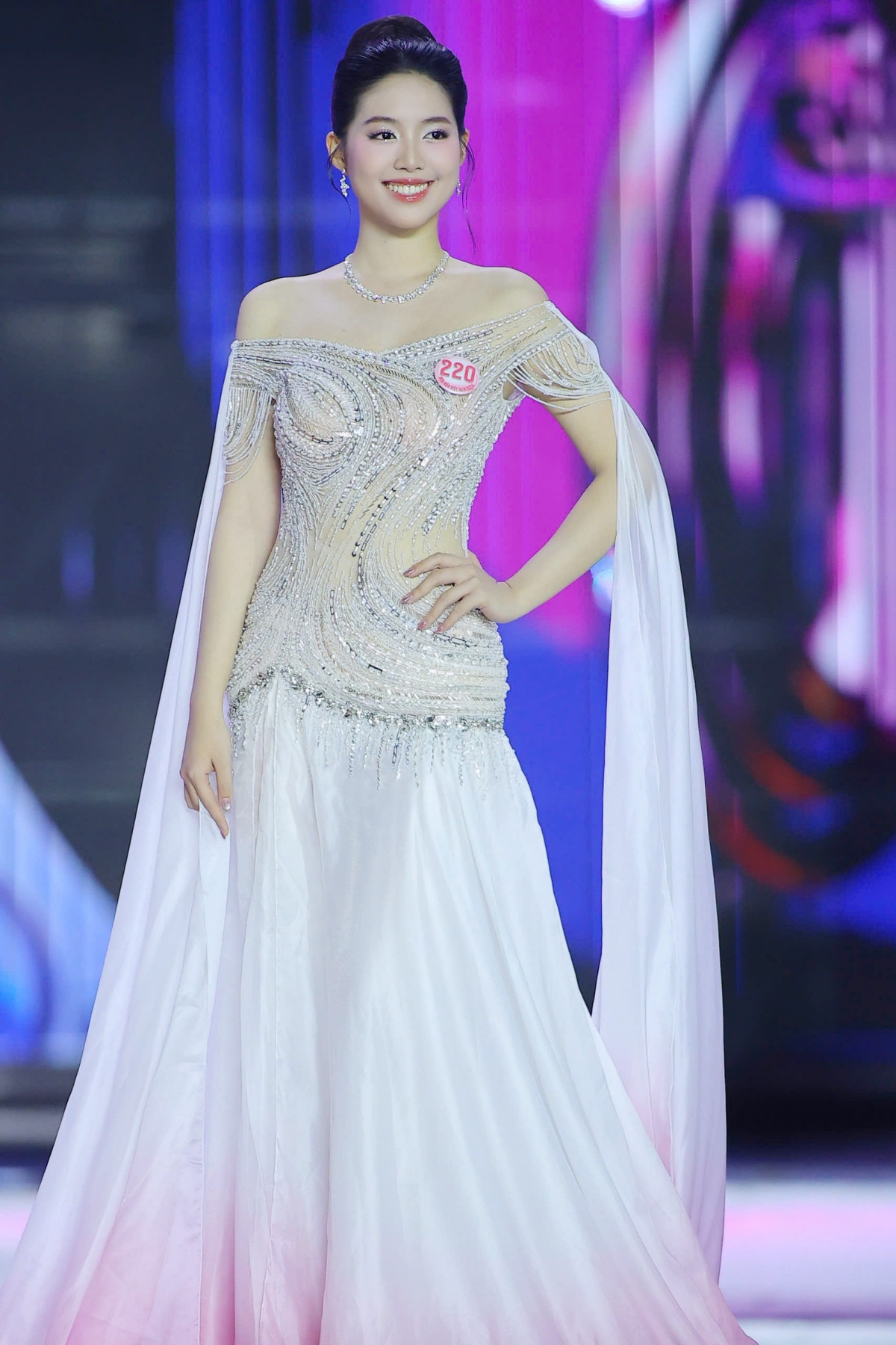 Á hậu 1 Trần Ngọc Châu Anh sinh năm 2003, đến từ Thủ đô Hà Nội, cao 1m70, số đo hình thể 86-60-90 cm.