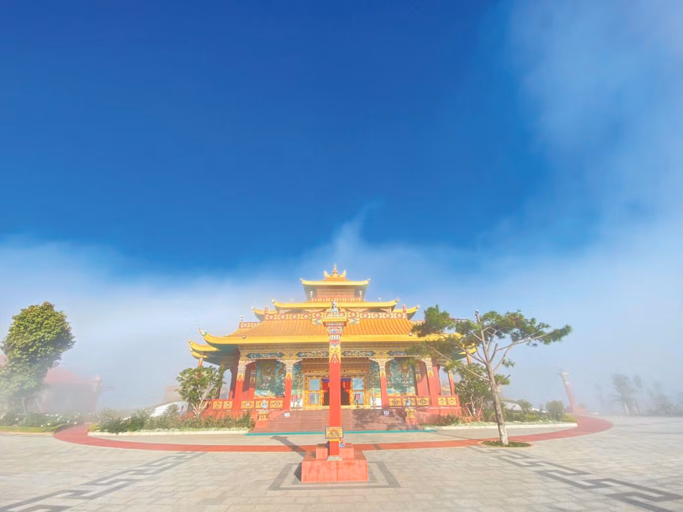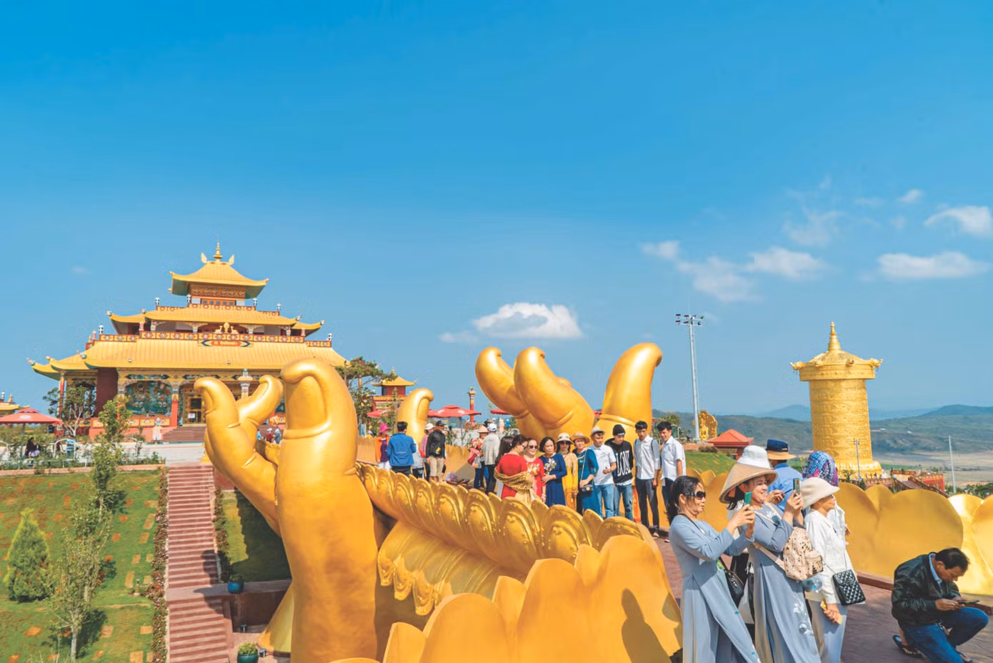 | Hoàng hôn trên những ngọn đồi cao hùng vĩ, nơi tĩnh lặng, an yên trong Không gian Văn hoá Tâm linh Phật giáo Kim Cương Thừa |