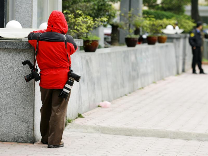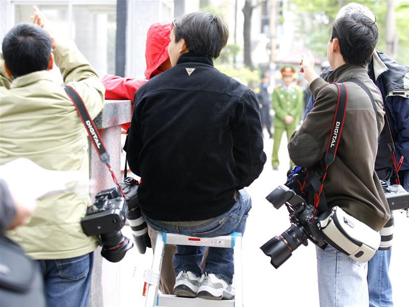 Các phóng viên ảnh đã chờ sẵn tại tòa nhà Rose Garden ngay từ sáng sớm, với hy vọng ghi lại được những khuôn hình đắt giá...