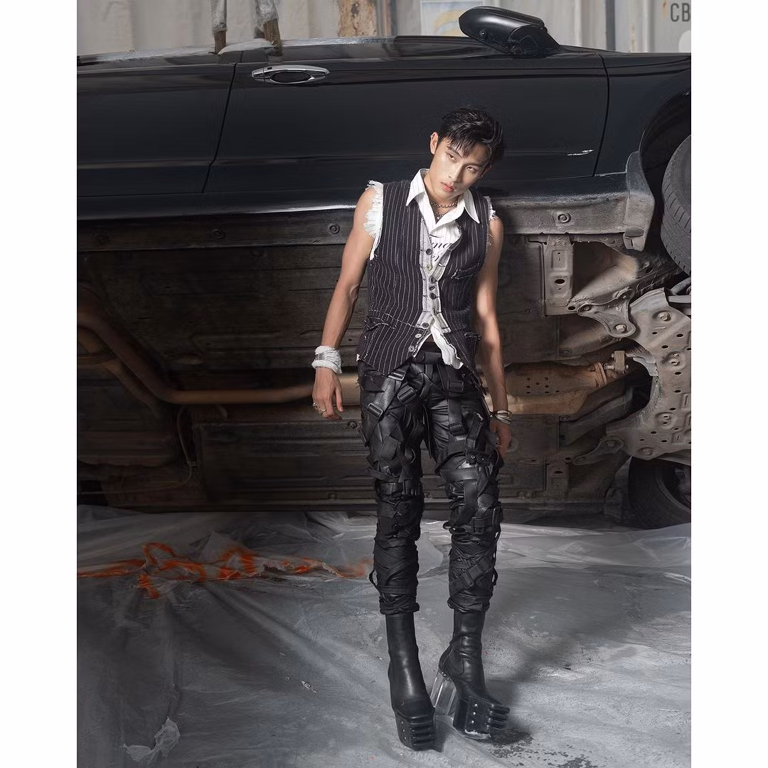 Nam nghệ sĩ sinh năm 2001 xuất hiện trong “siêu hit” Từng Quen với tạo hình cá tính. Anh cũng phối mẫu giày cùng quần bó đen nhưng kết hợp với áo sơ mi không tay và gile ở trên. Cách mix&match khiến diện mạo của Wren trở nên hài hòa, cân đối, khoe được bắp tay săn chắc.