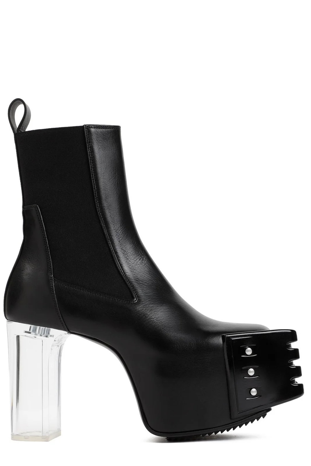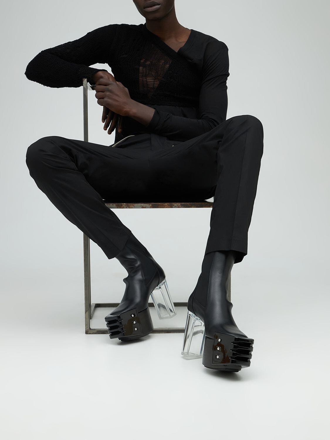 Mẫu giày cao gót có tên Grilled Platform Boots đến từ thương hiệu Rick Owens trở thành item được nhiều sao Việt ưa thích, liên tục đụng hàng. Mẫu giày da gây ấn tượng với phần mũi vuông, đế cao gót thủy tinh. Thiết kế độc đáo có nhiều phiên bản màu sắc, chất liệu khác nhau, được bán với giá từ 1.400 - 2.100 USD (khoảng từ 34 - 52 triệu đồng).
