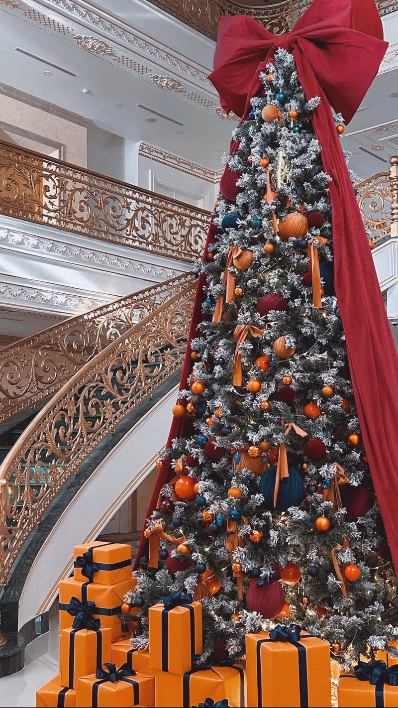 Siêu mẫu Lan Khuê "thả dáng" bên cạnh cây thông Noel khổng lồ trong biệt thư xa hoa. "Nàng dâu hào môn" ghi điểm khi lăng xê tông màu đỏ tía, kiểu phối tất chân nổi bật.