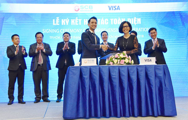 Ngoài ra, SCB cũng ký kết hợp tác toàn diện với Tổ chức thẻ quốc tế Visa. Theo đó, hai bên thống nhất sẽ cùng chia sẻ kinh nghiệm, cũng như hỗ trợ lẫn nhau trên mọi phương diện như mở rộng thị trường, trao đổi công nghệ, hỗ trợ tài chính… nhằm hoàn thành tốt nhất mục tiêu kinh doanh đề ra. Chính thức hợp tác từ tháng 01/2016, đến nay SCB là một trong những đối tác chiến lược của Visa, và luôn nằm trong top những ngân hàng có số lượng phát hành và doanh số chi tiêu thẻ Visa lớn nhất Việt Nam. Tháng 11/2017, SCB vinh dự nhận giải thưởng “Ngân hàng có tăng trưởng doanh số tốt nhất - Payment Growth Volume” do Visa trao tặng. Kết thúc 6 tháng đầu năm 2018, lợi nhuận từ hoạt động thẻ của SCB tăng 86,4% so với cùng kỳ năm trước.