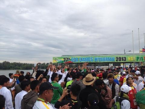 Sáng nay, môn Canoening của SEA Games 27 đã khởi tranh tại đập Naglike, cách trung tâm Nay Pyi Taw hơn 30 km. Ngay từ sáng sớm, rất đông người dân Myanamr đã đổ về nơi đây để theo dõi bất chấp bầu trời xầm xì như muốn mưa.