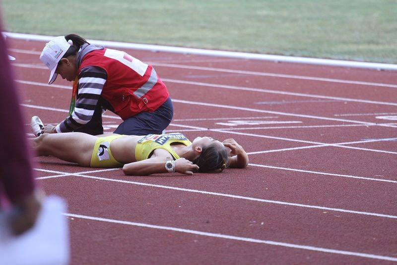 | Theo PV Vĩnh Xuân từ Nay Pyi Taw, VĐV Quách Thị Lan sau khi tuột mất HCV đáng tiếc trong những mét cuối cùng đã kiệt sức khi về đích và phải đi cấp cứu