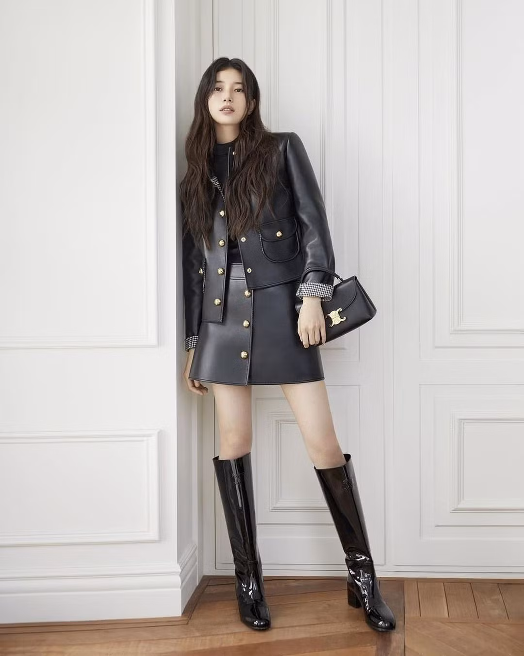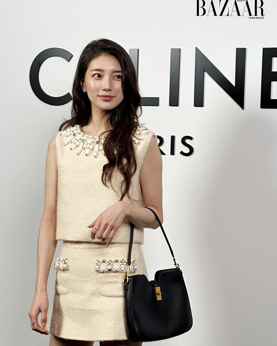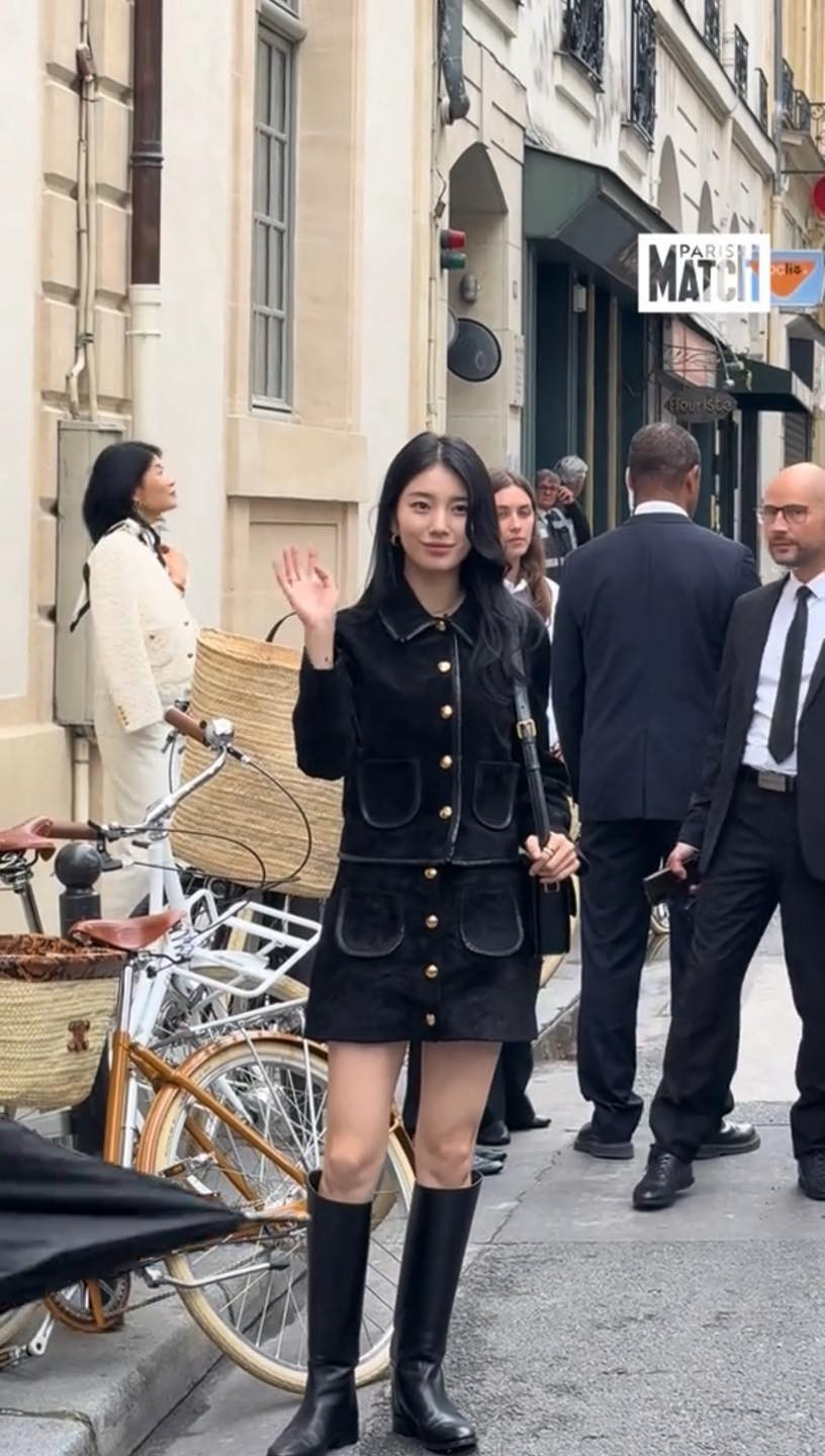 Suzy là nữ đại sứ toàn cầu đầu tiên dưới thời Giám đốc sáng tạo Michael Rider. "Tình đầu quốc dân" mặc outfit vải nhung tông màu đen tham gia sự kiện.