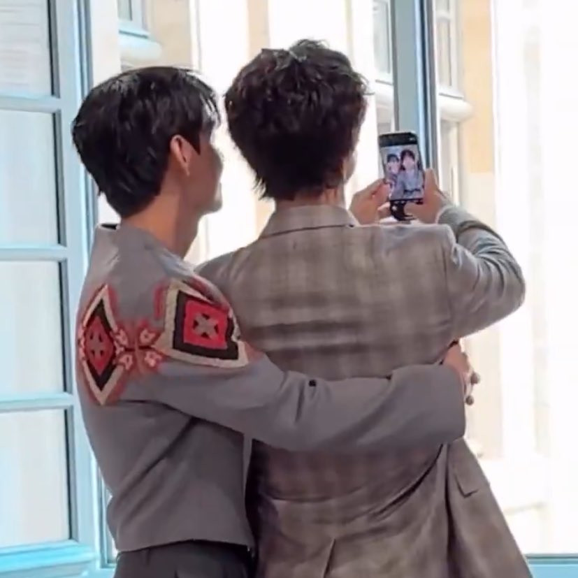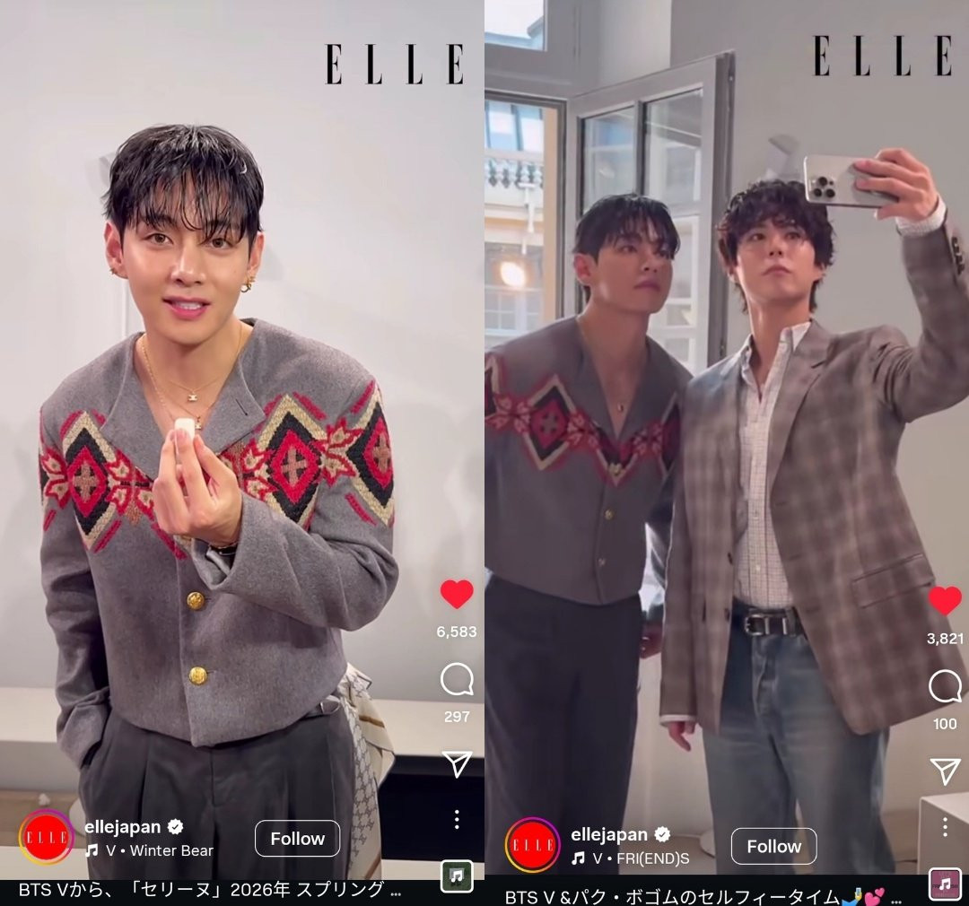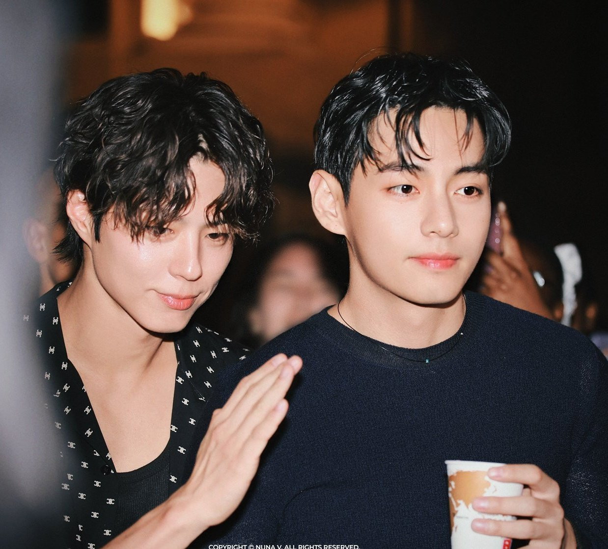 Bộ đôi đại sứ Park Bo Gum và V BTS thân thiết tại sự kiện. Khung hình Kim Taehyung "ôm cứng" anh bạn thân chụp hình selfie hay lúc Bo Gum tìm kiếm V BTS trên cửa sổ được ví như tái hiện lại cảnh phim Romeo và Juliet, khiến fan thích thú.