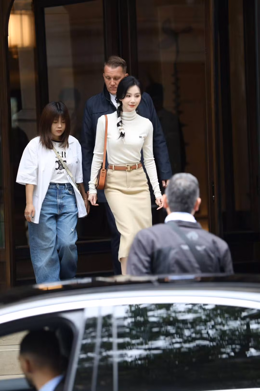 Lưu Thi Thi tỏa sáng giữa trời Âu nhờ tạo hình phong cách giàu ngầm (quiet luxury) gam màu be sáng. Khác với hình ảnh được ê-kíp công bố, nữ đại sứ toàn cầu thay đổi sang kiểu tóc tết lệch phối ruy băng tới sự kiện. Sự chỉnh sửa tinh tế giúp mỹ nhân Hoa ngữ trẻ trung hơn nhiều so với tuổi thật.