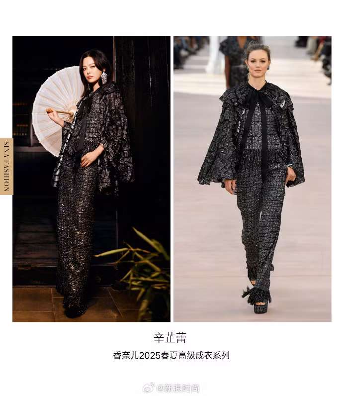 Tân Chỉ Lôi là sao nữ hiếm hoi nhận đãi ngộ trang phục Haute Couture Xuân Hè 2025 của Chanel tại sự kiện. Vẻ quyền lực, ma mị của mỹ nhân Phồn Hoa trong các thiết kế đính kết pha lê được đánh giá cao.