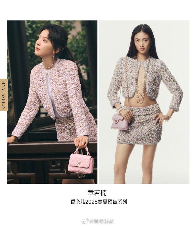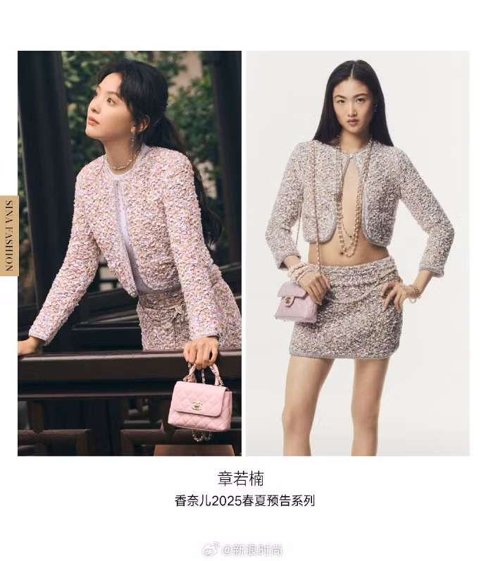Chương Nhược Nam khoe nhan sắc trẻ trung, yêu kiều trong bộ trang phục tông hồng tím thuộc BST Xuân Hè 2025 của nhà mốt. Đây là lần thứ hai nữ chính Hôn Lễ Của Em tham dự show diễn của nhà mốt Chanel.