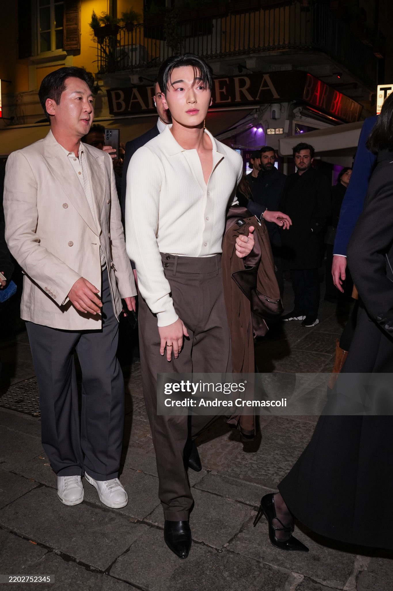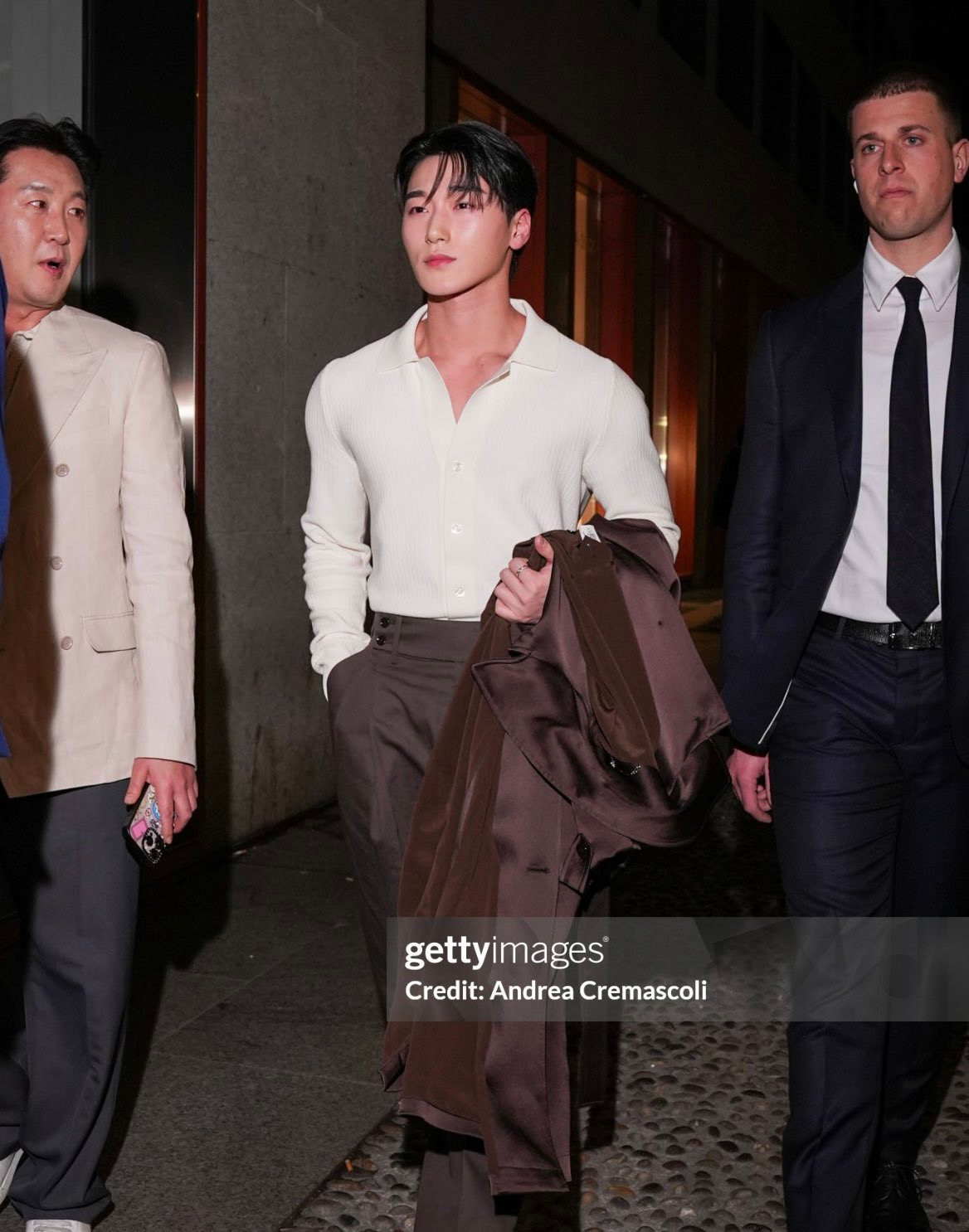 Choi San ATEEZ gây sốt với sắc vóc vạm vỡ trong trang phục tông nâu, be nhạt dự tiệc after-party của nhãn hàng. Nam idol "sáng bừng" visual qua ống kính của "hung thần" Getty Images.