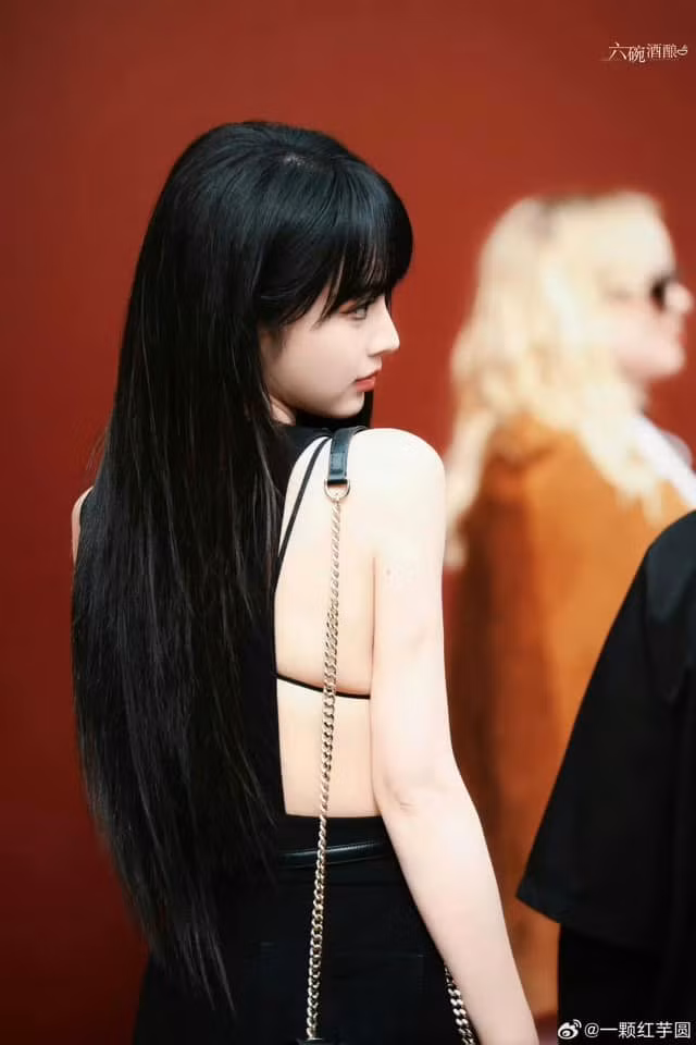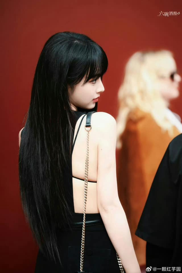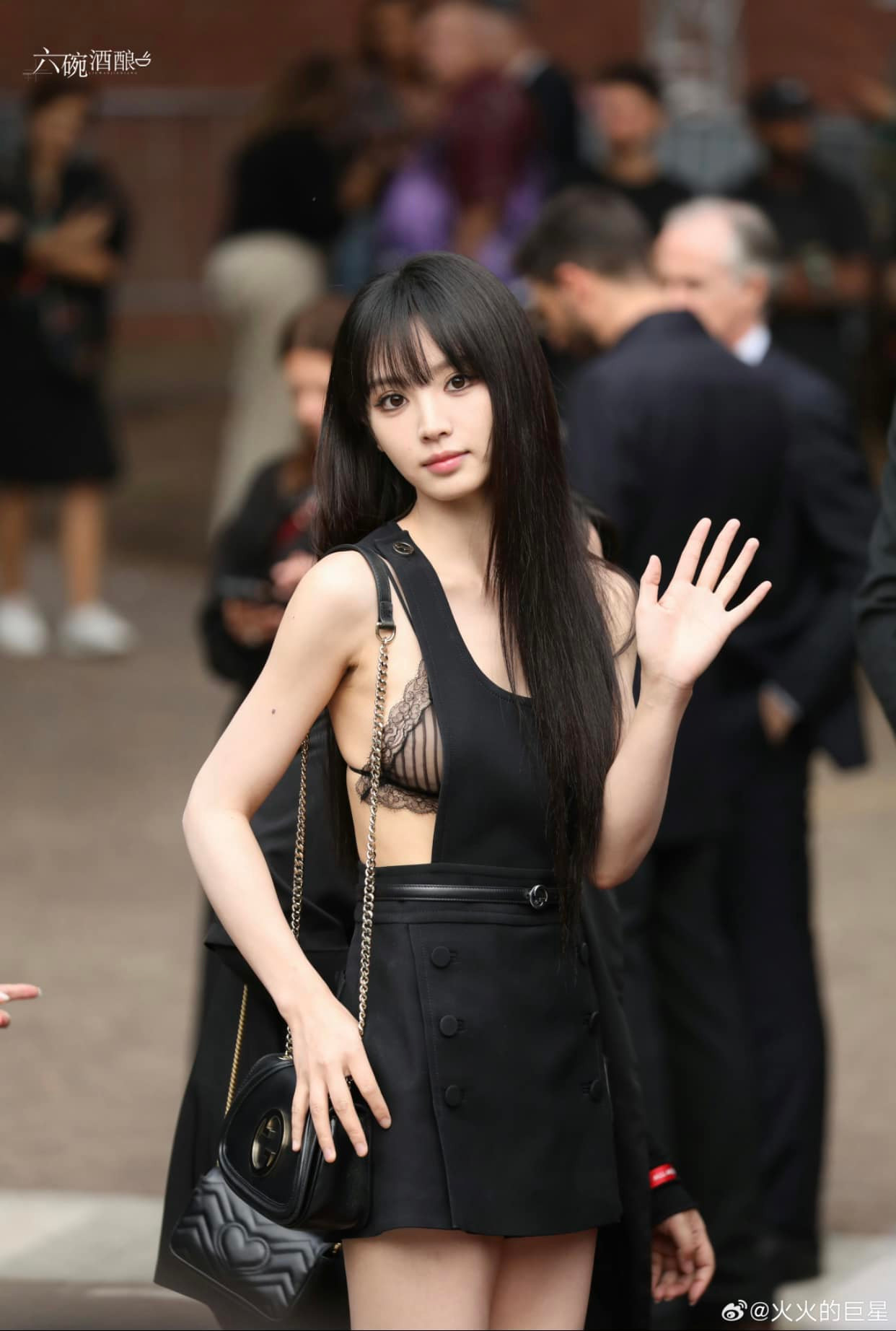 Một cái tên khác cũng khiến netizen trầm trồ tại show diễn của nhà mốt Gucci là "bạn thân thương hiệu" Điền Hi Vi. Mỹ nhân Hoa ngữ "gây choáng" khi diện set yếm đen phối cùng thiết kế áo bra chất liệu ren.