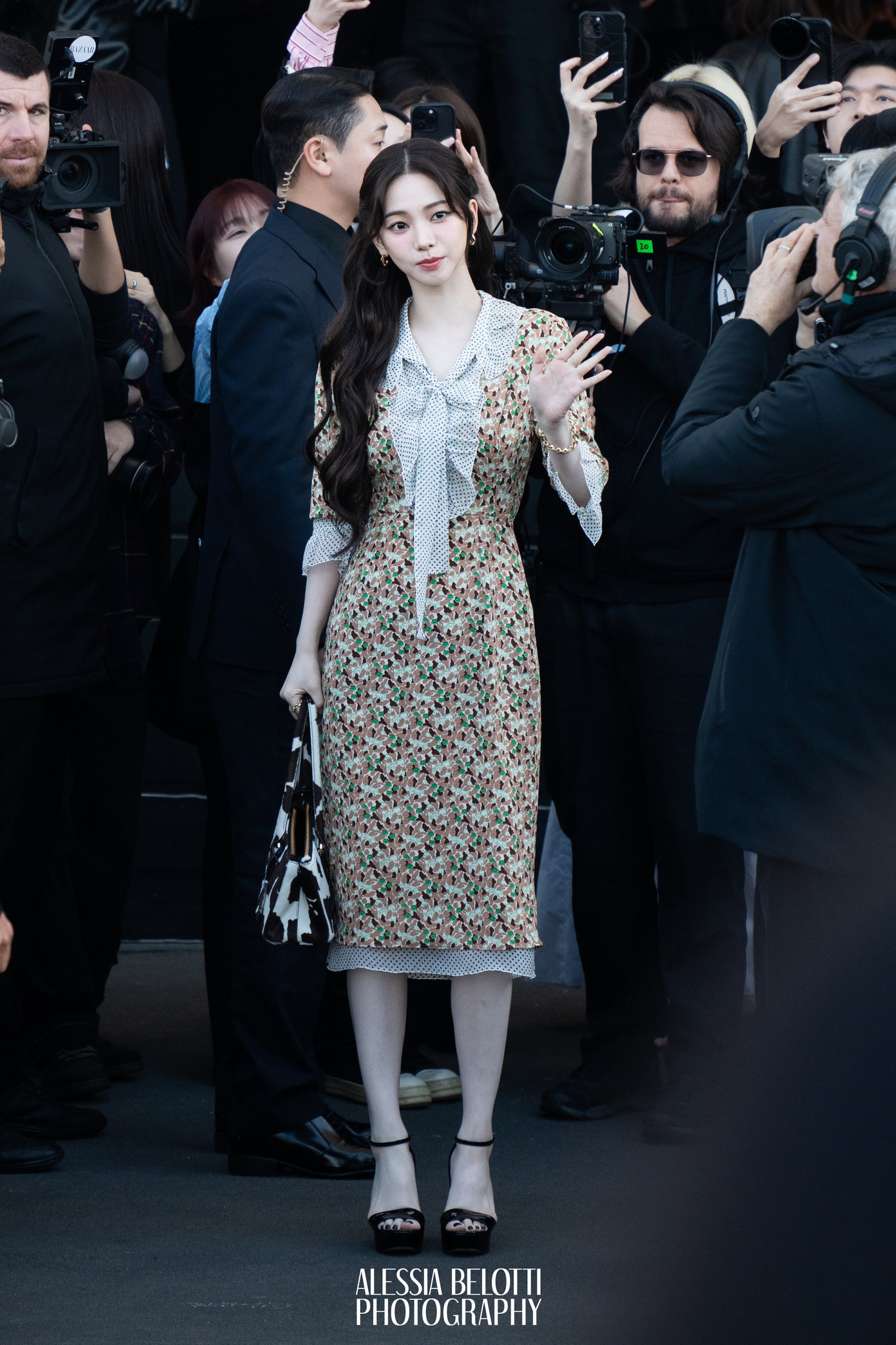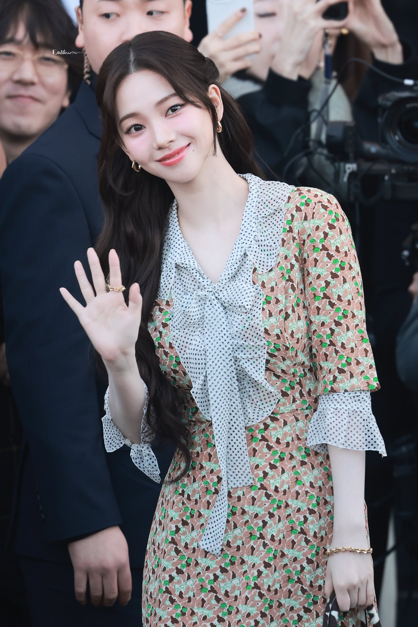 Karina aespa xuất hiện tại sự kiện trong mẫu đầm họa tiết hoa nhí, mái tóc xoăn sóng dài. Phong cách tiểu thư cổ điển khác hẳn tạo hình sân bay thời thượng khiến người hâm mộ bất ngờ.