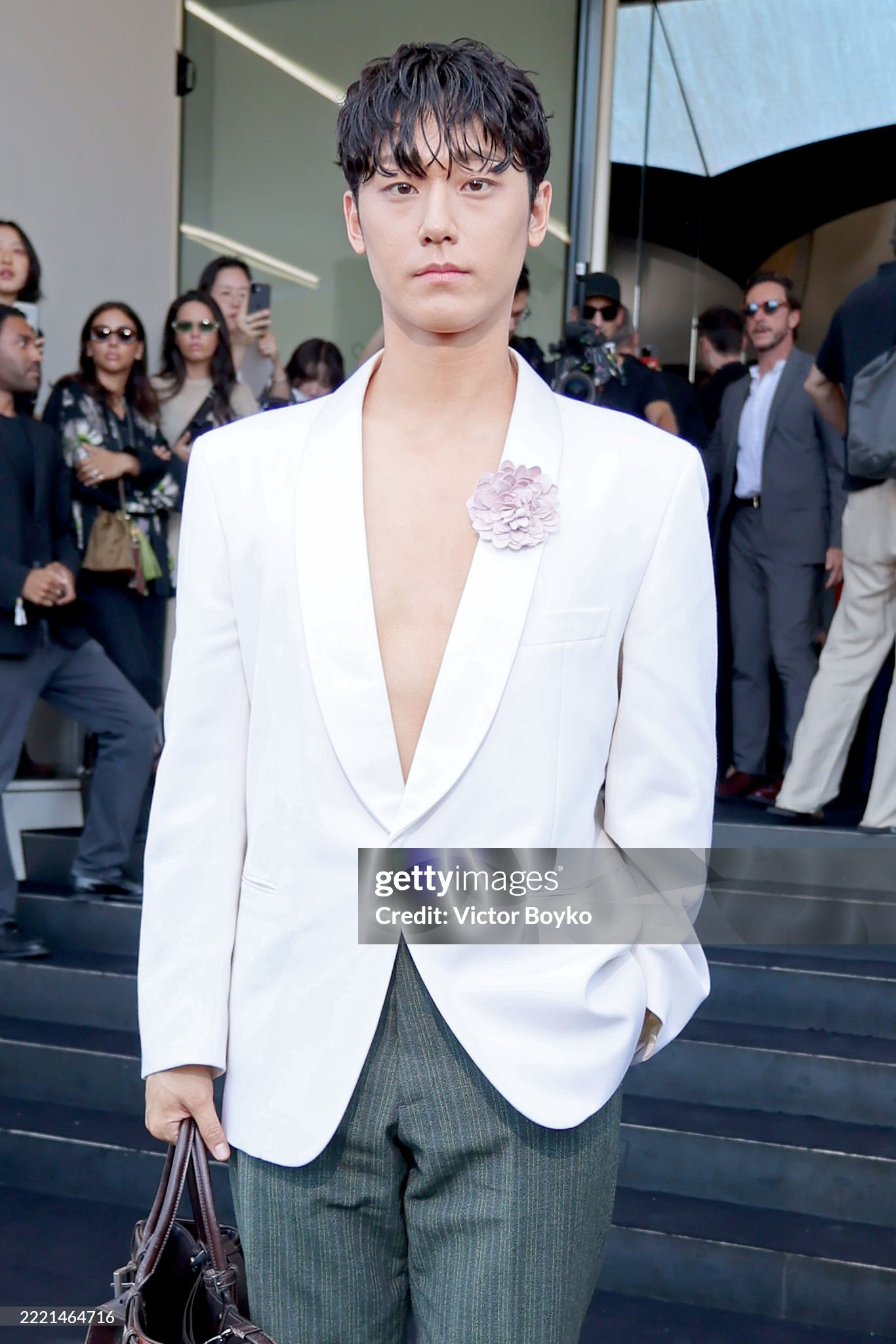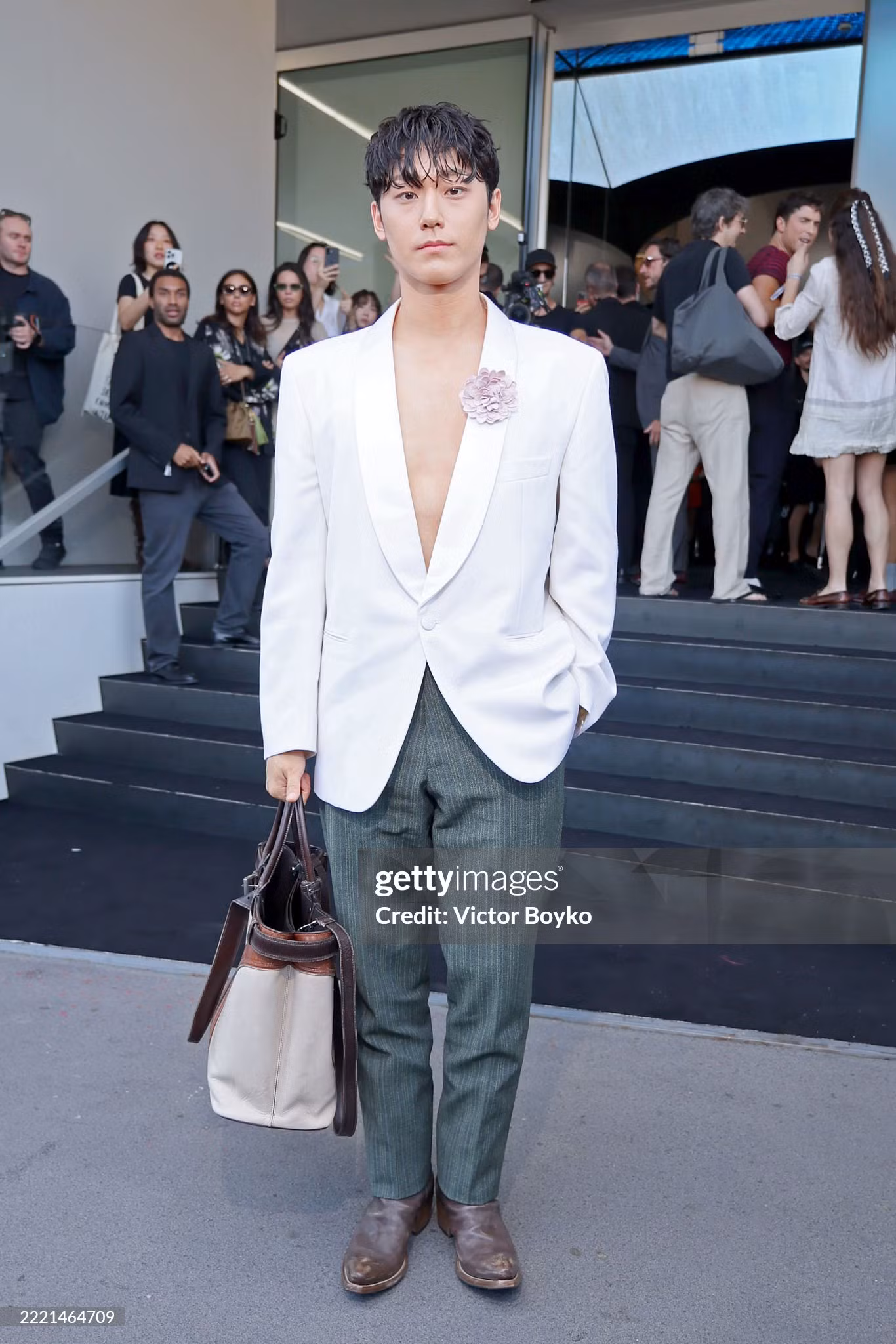 Lee Do Hyun vừa xuất ngũ không lâu, nam diễn viên được mời tới hàng ghế đầu dự show Prada. Mỹ nam Sweet Home xuất hiện trong tạo hình quý ông thanh lịch, mới mẻ so với hình tượng "bạn trai nhà bên" thường thấy. Bộ cánh bao gồm áo blazer trắng, phối cùng quần âu xám kẻ sọc, nhấn nhá ở hoa cài áo, túi xách to bản.