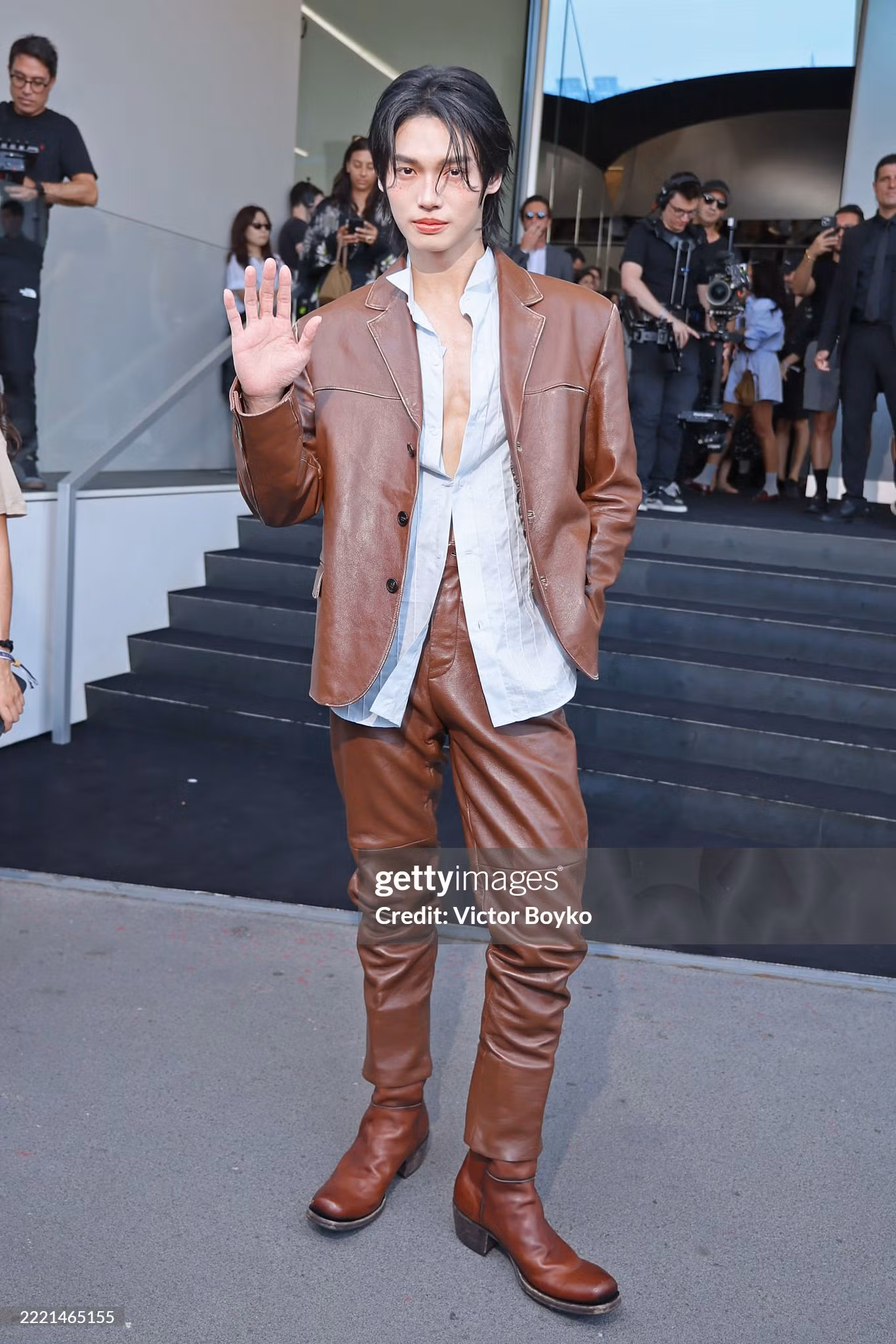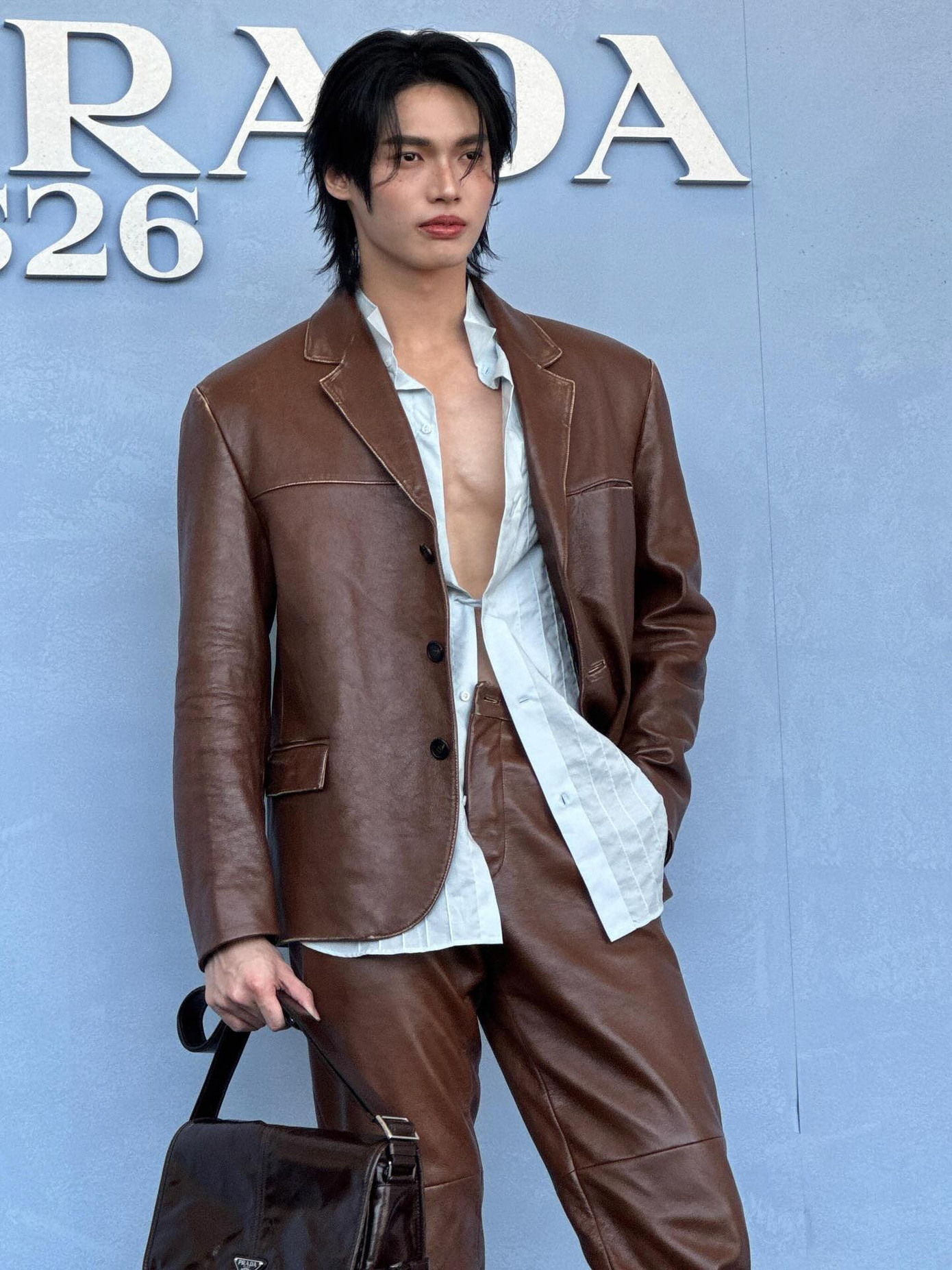 Win Metawin duy trì phong độ mặc đẹp trong ngày tái xuất Milan Fashion Week 2025. Nam đại sứ người Thái Lan lăng xê tông nâu mocha thịnh hành từ đầu tới chân, là thiết kế trang phục nằm trong BST Thu Đông 2025 của thương hiệu. Lối make-up tàn nhang, cài cúc hờ hững mang đến vẻ điển trai lãng tử cho sao nam người Thái.
