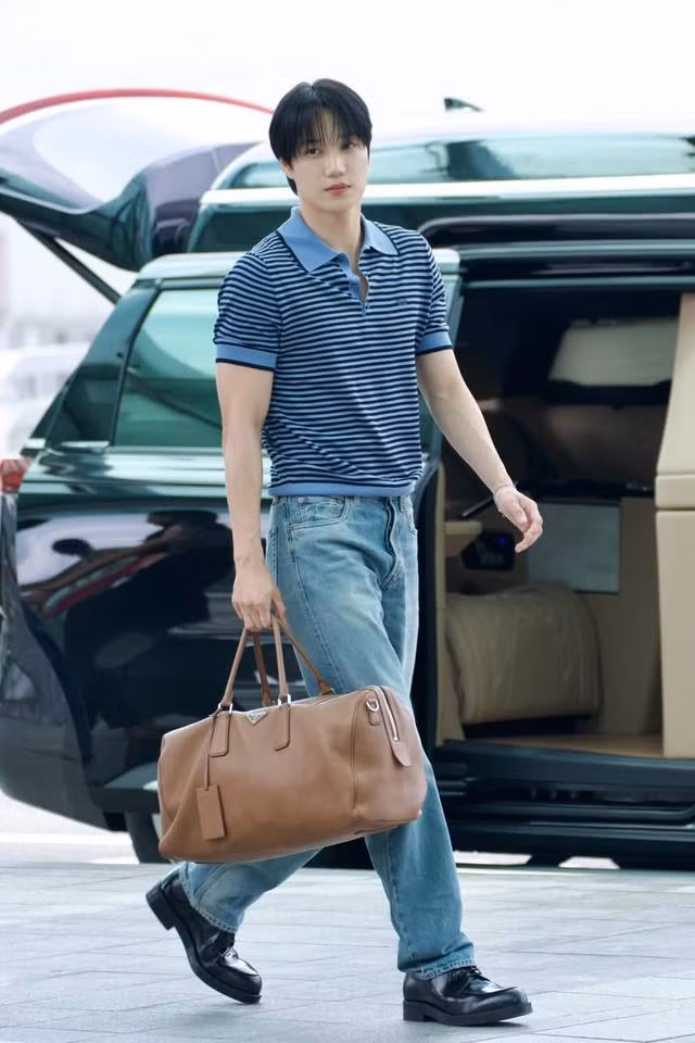 Chỉ vài ngày trước, Kai EXO đã "nhá hàng" về màn hợp tác với thương hiệu khi diện nguyên cây Prada tới sân bay, khởi hành sang Singapore chuẩn bị cho concert solo.